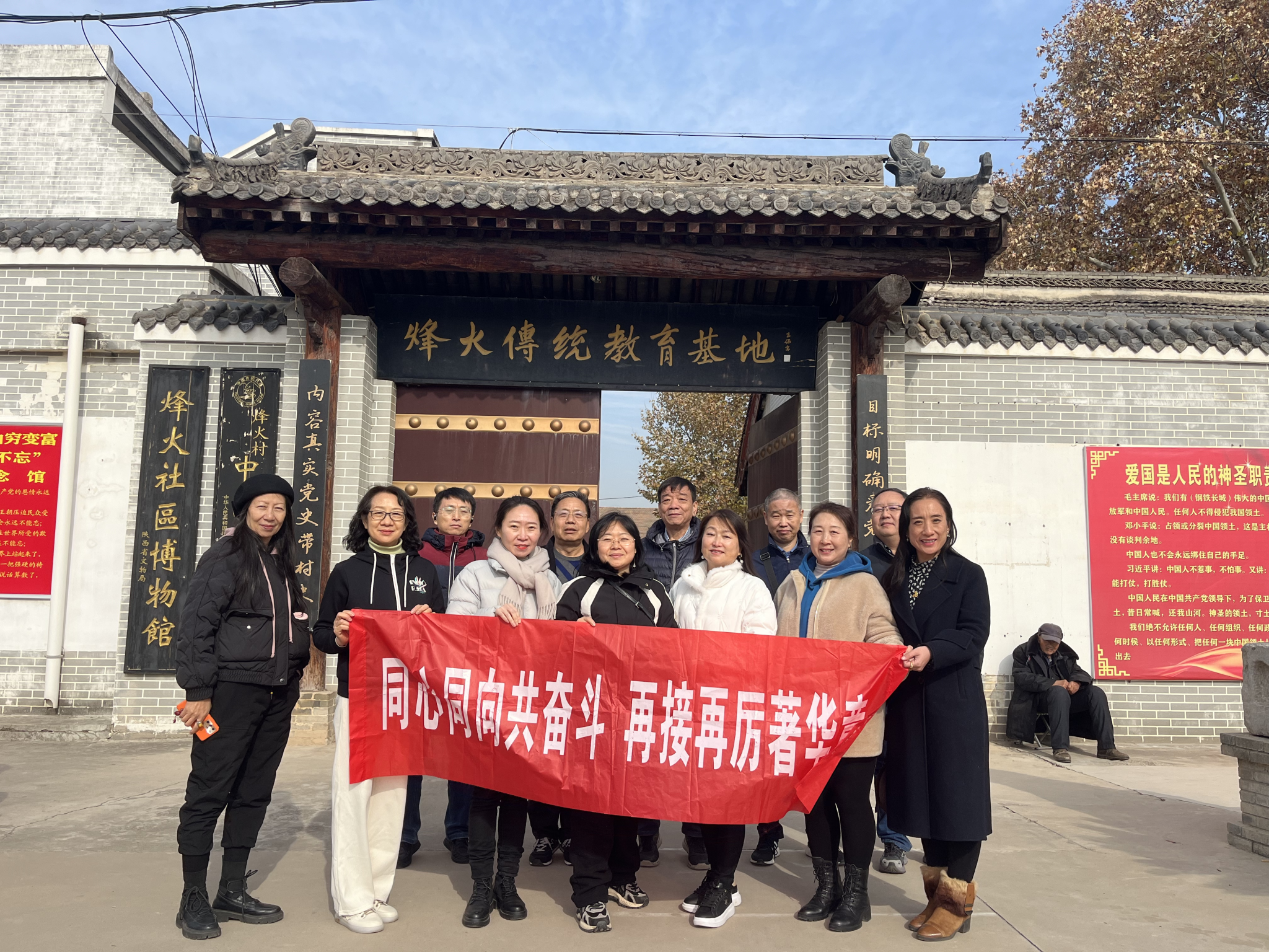 之后繼續赴咸陽市禮泉縣參觀烽火村紅色傳統教育基地。烽火村早在20世紀五六十年代是陜西省農業戰線上聞名全國的“模范村”和“農業學大寨”先進村。新中國成立之初在王保京的帶領下,烽火村經歷了一系列農村集體經濟發展的歷程。