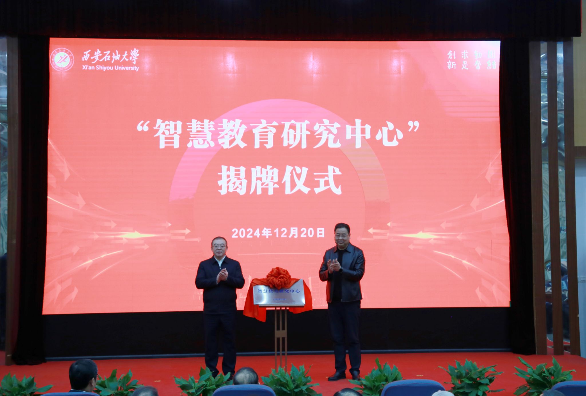 校黨委書記常江、陜西省教育廳教育信息化處處長李享陽共同為“智慧教育研究中心”揭牌。