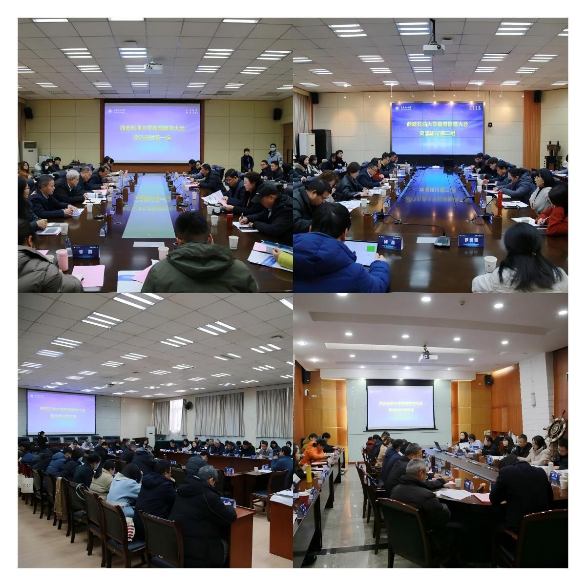學校信息化建設與管理處、教務處、研究生院、石油工程學院、計算機學院負責人和教師代表分別以《加快智慧校園建設助推學校高質量發展》《推動數智賦能創新教育教學新形態》《數智賦能學位與研究生教育高質量發展》、《邁向數智時代,培育拔尖人才——運用數字技術開展創新班教學改革》、《構建行業垂直模型,提升科研教學水平——石油大模型建設賦能數智教育新變革》、《智慧教學課程改革的實踐與思考——以“自動控制理論”為例》為題作了專題匯報。