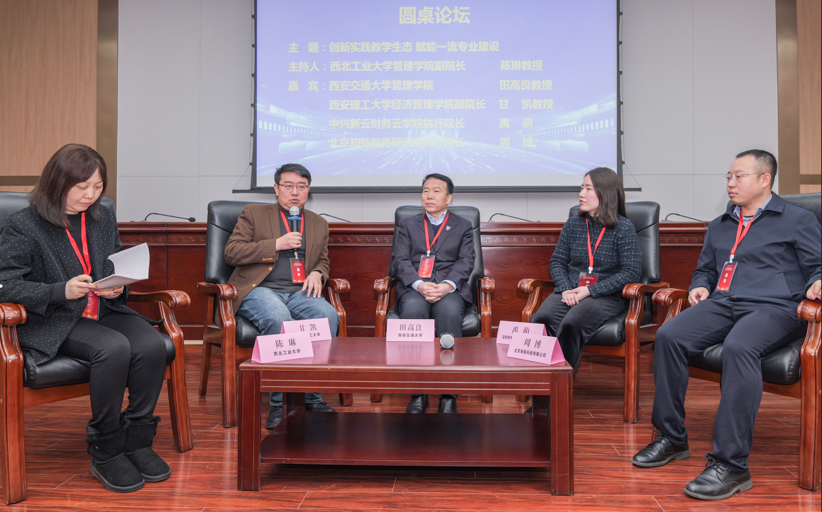 圓桌論壇由西北工業大學管理學院副院長陳琳教授主持。特邀西安交通大學管理學院田高良教授、西安理工大學經濟管理學院副院長甘凱、中興新云財務云學院執行院長禹萌、北京知鏈教育研究院執行院長周博出席圓桌論壇,四位專家圍繞“創新實踐教學生態,賦能一流專業建設”主題進行了充分交流與討論。田高良教授分享了西安交通大學在實踐教學中的創新舉措,強調校企合作的重要性。甘凱副院長分享了西安理工大學通過構建多維度實踐教學體系,提升學生的綜合能力的創新實踐。禹萌院長結合中興新云財務云學院的實踐,分享了財務數字化轉型背景下的人才培養路徑。周博院長分享了北京知鏈教育研究院通過區塊鏈技術賦能實踐教學,推動教育模式的革新的做法。