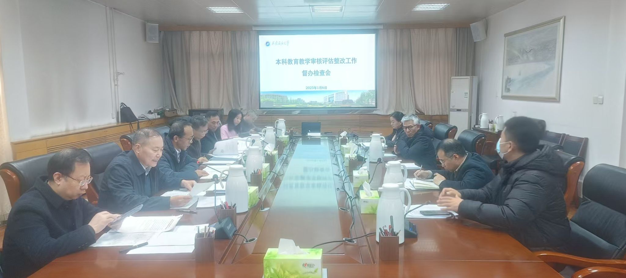 1月6日下午,學校在雁塔校區行政樓五樓會議室召開本科教育教學審核評估整改工作督辦檢查會。校黨委副書記張木、副校長張君濤出席會議,黨委辦公室(校長辦公室)、組織部、教師工作部、教務處、實驗室管理處、高教研究與評估督導中心、科研處等部門負責人參加會議。