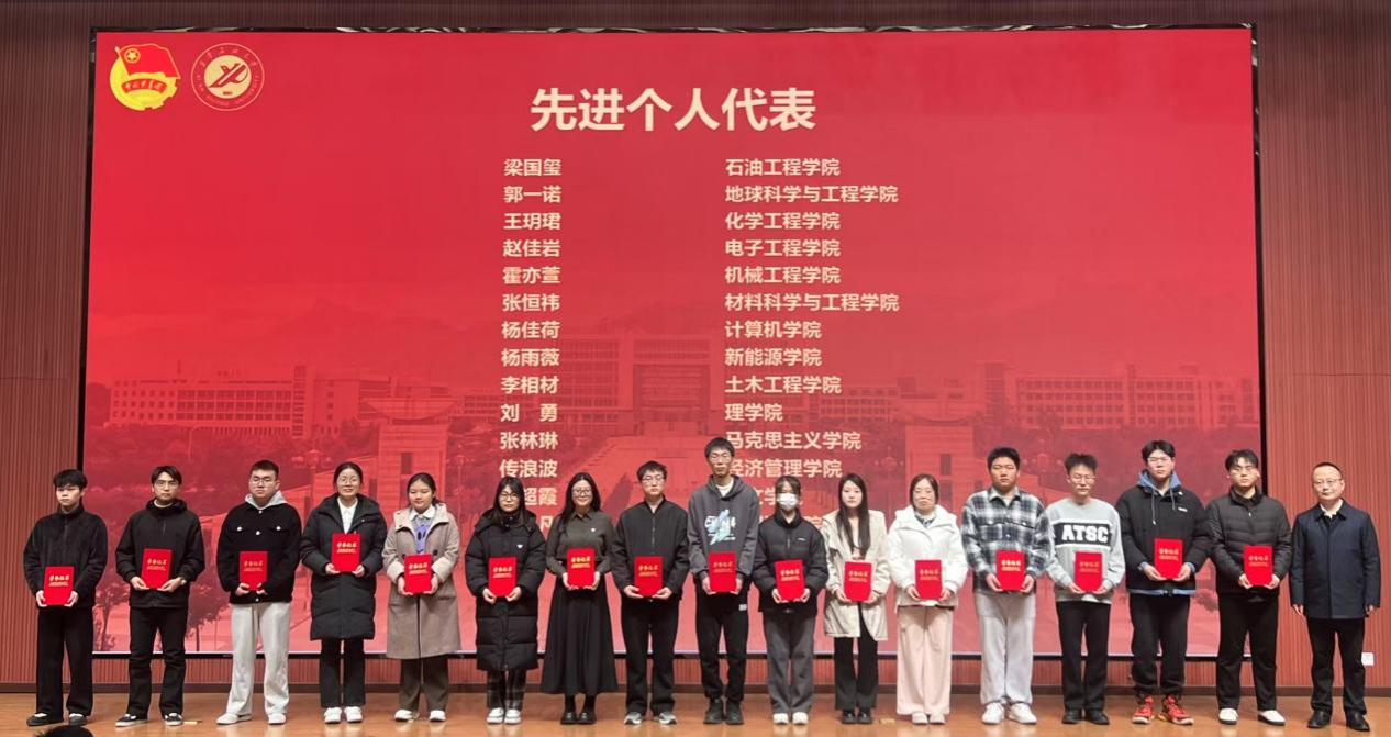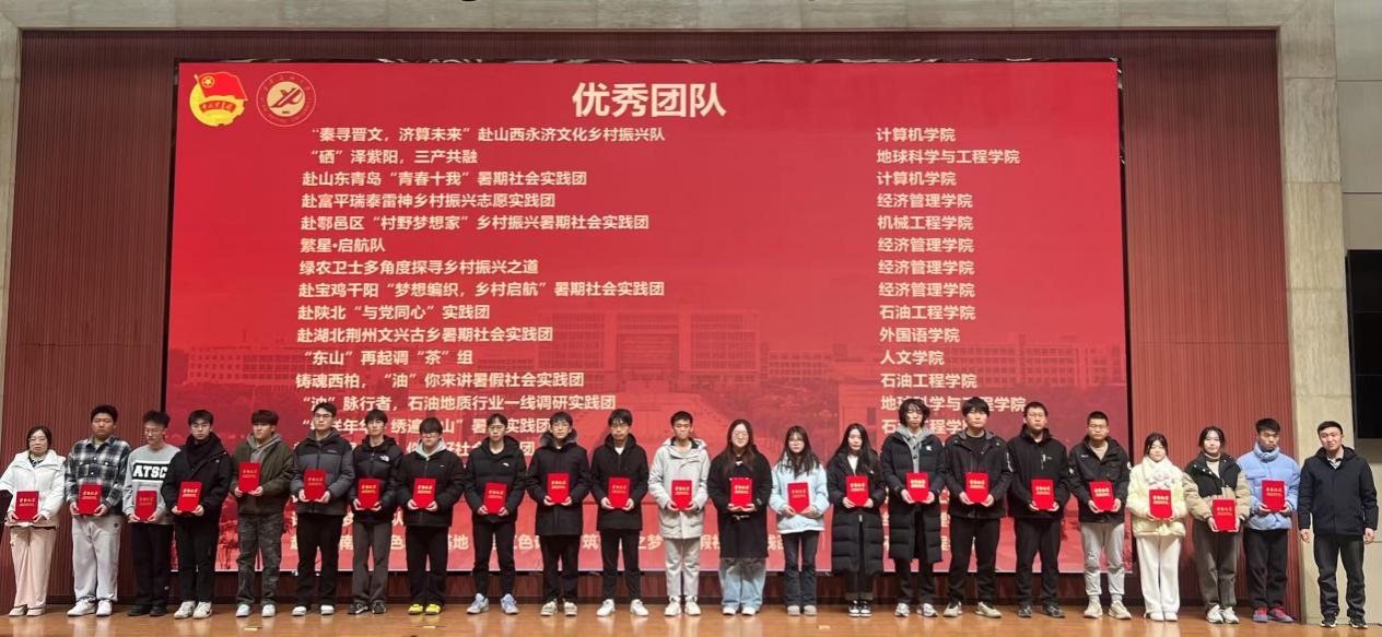 會上,校團委負責人宣讀了《關于2024年西安石油大學大學生暑期社會實踐活動的表彰通知》《關于開展西安石油大學2025年大學生寒假“返家鄉”社會實踐的通知》,趙健為2025年寒假“返家鄉”社會實踐團隊代表授旗,與會部門負責人分別為2024年暑期社會實踐先進個人代表、優秀團隊、標兵團隊、優秀指導老師、優秀組織單位頒發了證書和獎牌。經濟管理學院商管2302班吳宇星同學代表2024年暑期社會實踐獲獎團隊作了交流發言。