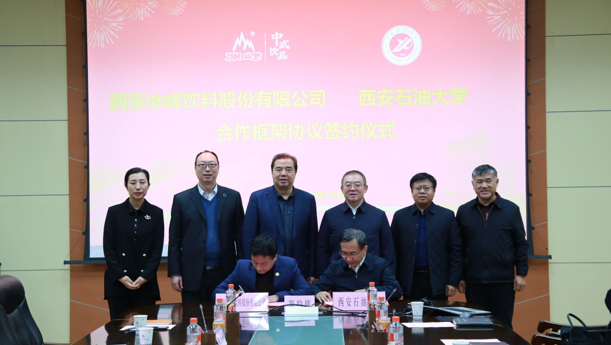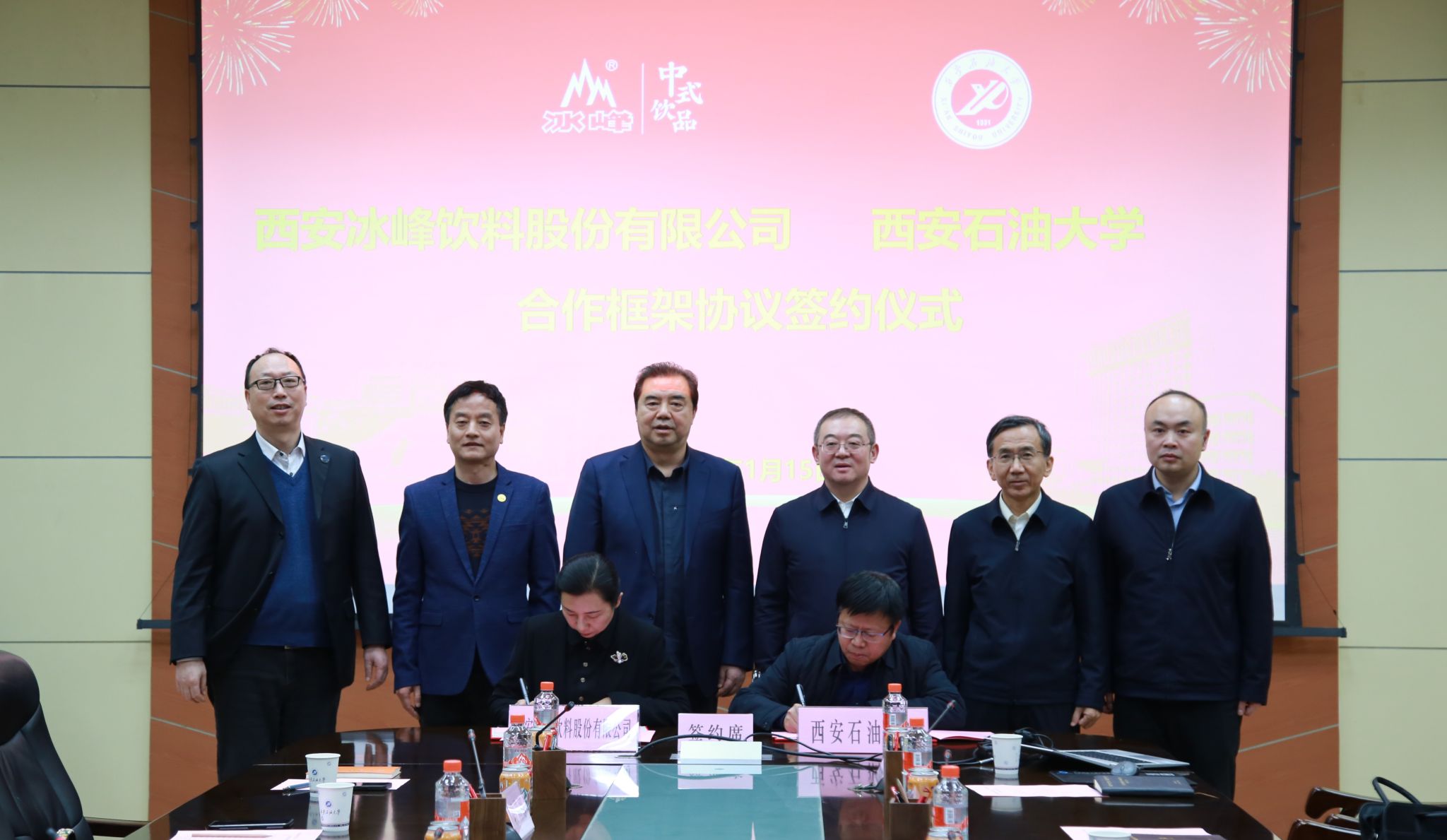 會上,張木和姚軍鋒分別代表校企雙方簽署了《西安冰峰飲料股份有限公司與西安石油大學合作框架協議》、張驍勇和段莉娜分別代表校企雙方簽署了《西安冰峰飲料股份有限公司與西安石油大學合作補充協議》。根據協議內容,雙方將本著優勢互補、互惠互利、相互協作、共同發展的原則,在課題研究、品牌宣傳、戰略營銷、冰峰基金設立、人才培養、學生就業、平臺基地建設、社會服務等方面展開全方位的合作。