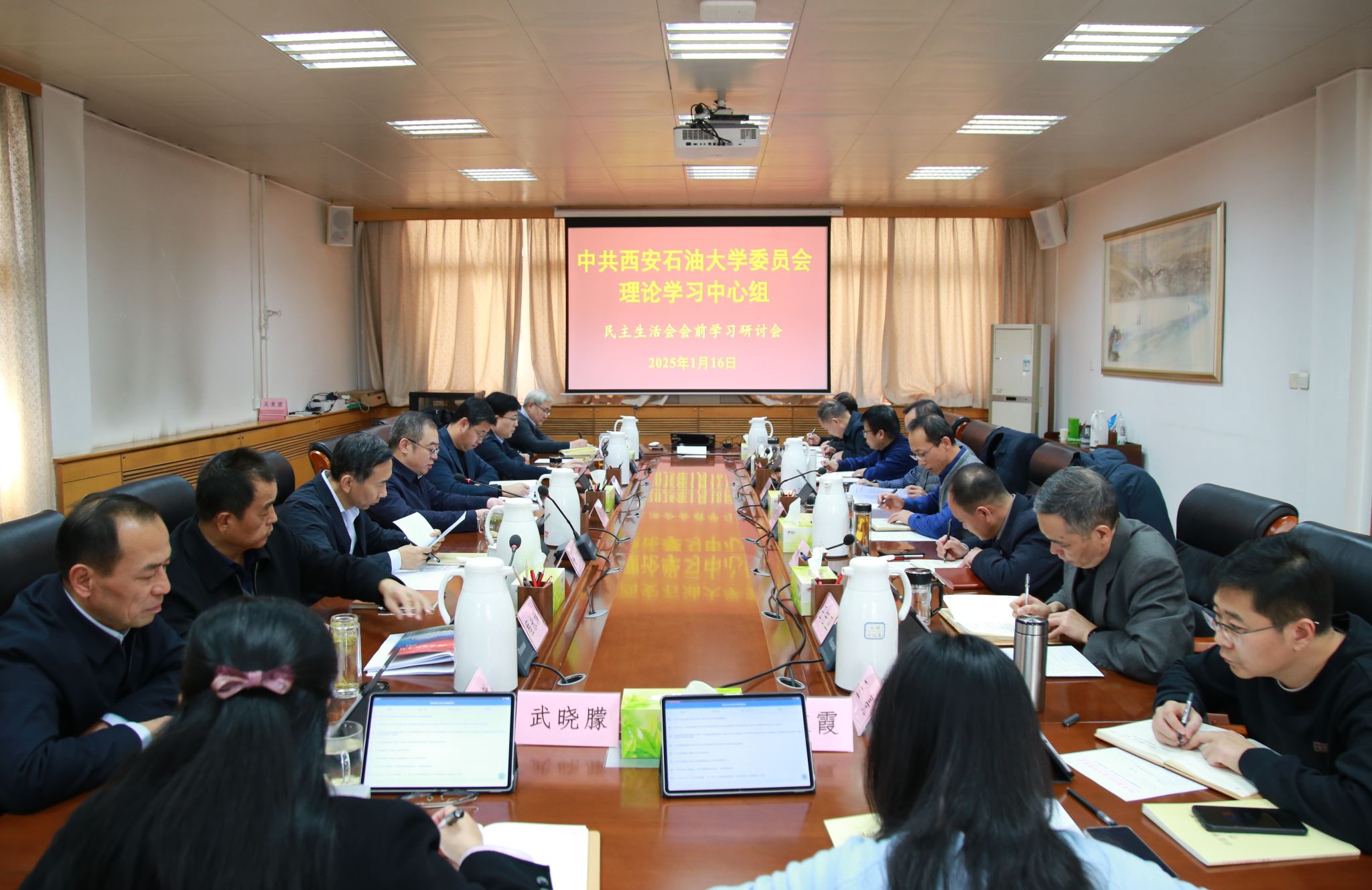為切實打牢開好2024年度民主生活會的思想基礎,進一步提高政治站位、深化思想認識、強化政治擔當,按照上級部署要求和學校黨委工作安排,1月16日下午,校黨委理論學習中心組2025年第1次學習會暨民主生活會會前學習研討會在雁塔校區行政樓五樓會議室召開,分集中學習和集體研討兩個環節進行。校黨委書記常江主持并講話,校黨委理論學習中心組成員參加會議。