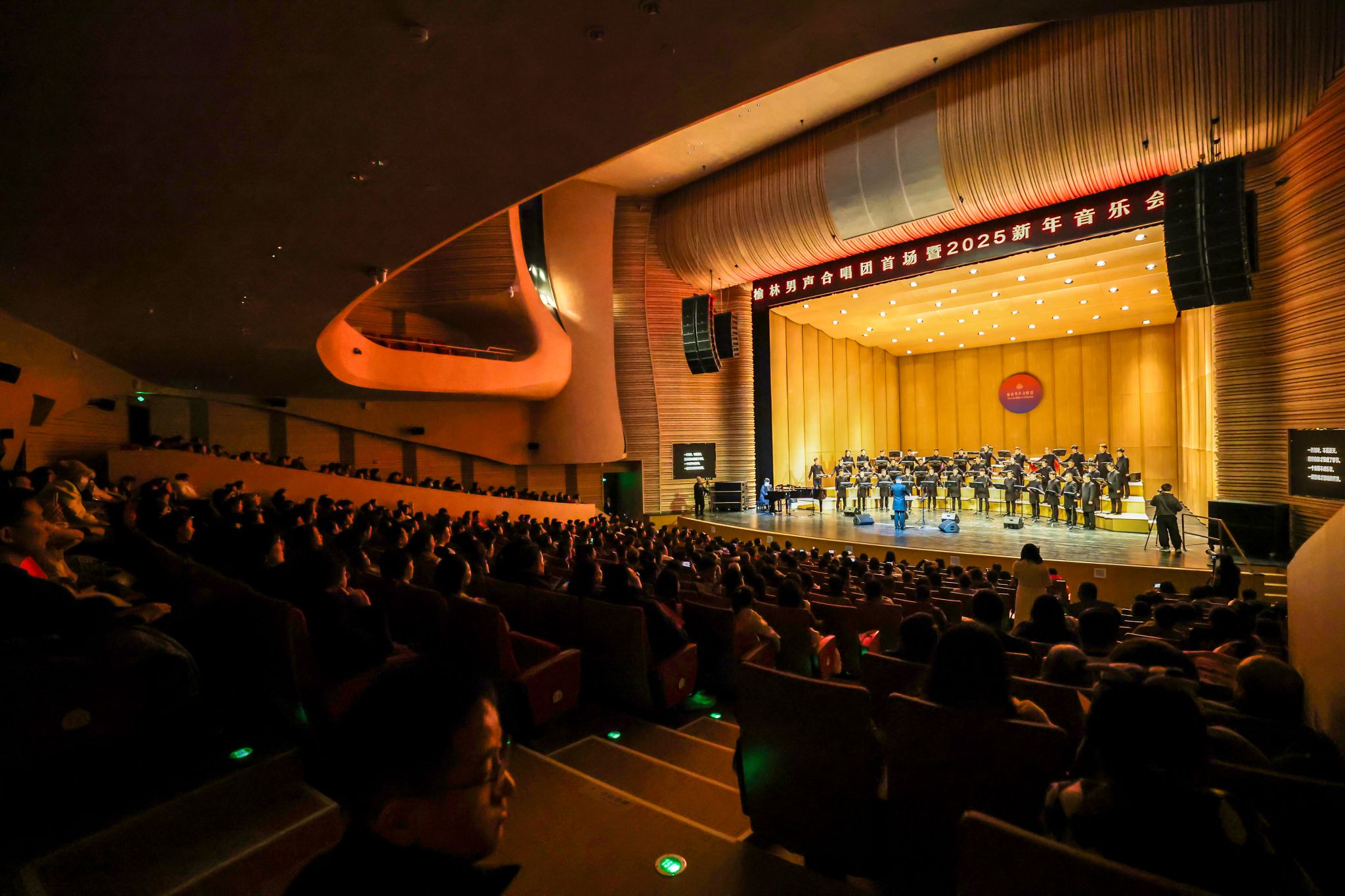 整場音樂會共分“古典之風”“流行樂章”“各地民歌”三個篇章,巧妙融合了榆林這座城市獨有的歷史文化底蘊與現代蓬勃朝氣。其中,拉丁語演唱的選自清唱劇《布蘭詩歌》中的唱段“在酒館里”,作為世界經典男聲合唱作品,一展合唱團的專業水準;韓語演唱的歌曲《你不要擔心》,則是在榆林地區的首次公演,為觀眾帶來別樣的聽覺體驗。此外,在排練期間不脛而走的清澗方言歌曲《可想你哩》,憑借網絡高達5000萬的播放量,成為當晚的壓軸曲目。演出時,臺上臺下齊聲合唱,全場互動熱烈,將氛圍推向高潮。一位觀眾在結束時不禁感慨:“原本對本土音樂會期待不高,沒想到卻帶來巨大的驚喜!榆林如今也與世界接軌了!”更有觀眾不遠千里,從海南、山西、內蒙、西安等地專程趕來榆林觀看,對合唱團成員的高水平表現給予了高度贊譽。