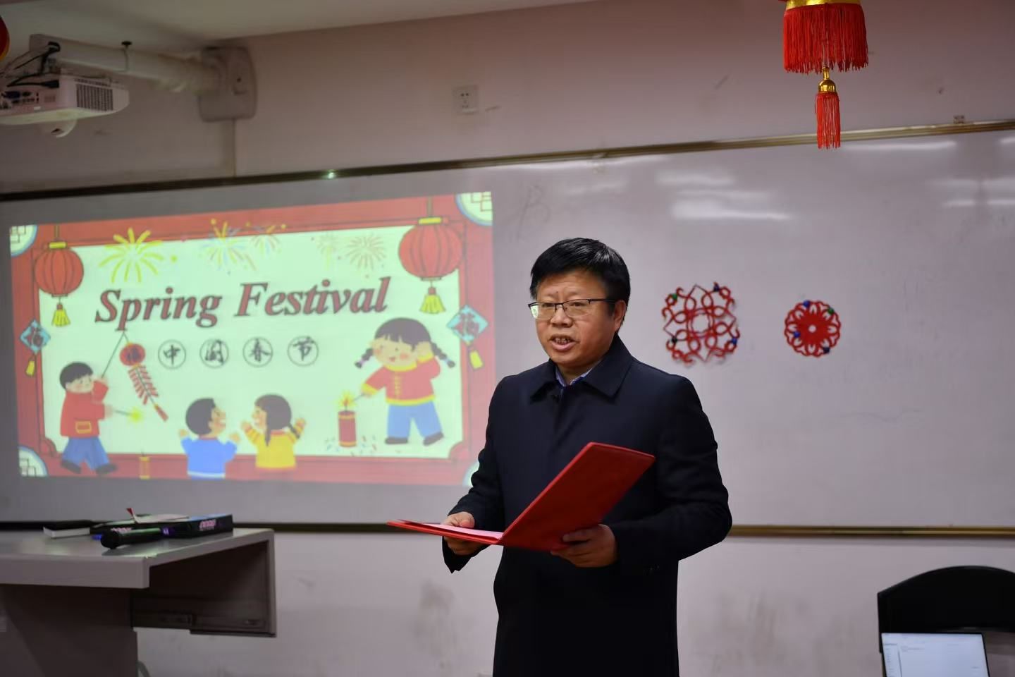 張驍勇發表新年致辭,向寒假期間留校的國際學生送上了誠摯的新春祝福。他指出,國際學生作為文化交流使者的重要性,在華感受新春民俗,鼓勵他們在新的一年里繼續探索中國文化,積極參與學校和社會的各項實踐活動。