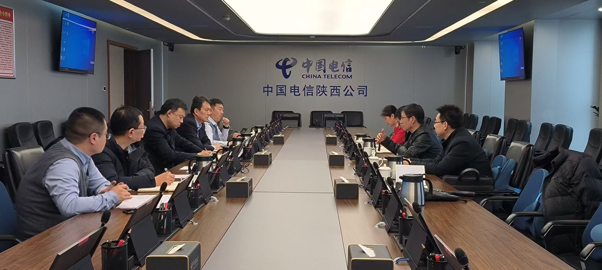 3月5日下午,副校長蘇文甫帶隊赴陜西電信公司走訪交流。陜西電信公司黨委委員、副總經理閆衛東主持座談會,陜西電信公司政企信息服務事業群副總經理孫磊、陜西電信公司教育文宣行業事業部總經理易滟莉、西安電信公司副總經理花楠等參加座談。