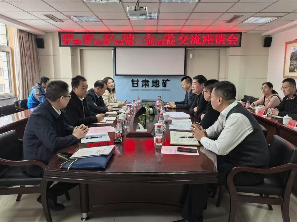 3月11日上午,在甘肅省地礦局第二勘察院走訪期間,甘肅省地礦局第二勘察院黨委書記、院長白廷祥主持座談會,黨委副書記兼工會主席曾永剛、副院長陳世強、俞勝等出席會議。白廷祥對程永清一行的到來表示歡迎。他簡要介紹了公司的基本情況、發展歷程、探區分布和公司業務板塊情況,對學校畢業生給予高度肯定和贊揚。他表示做強科技、做大規模、做精管理、做優人才、做厚文化、做實黨建,需要與學校深化交流,希望雙方在圖書資料共享、專利聯合申報、在職員工教育培訓等方面實現進一步合作。