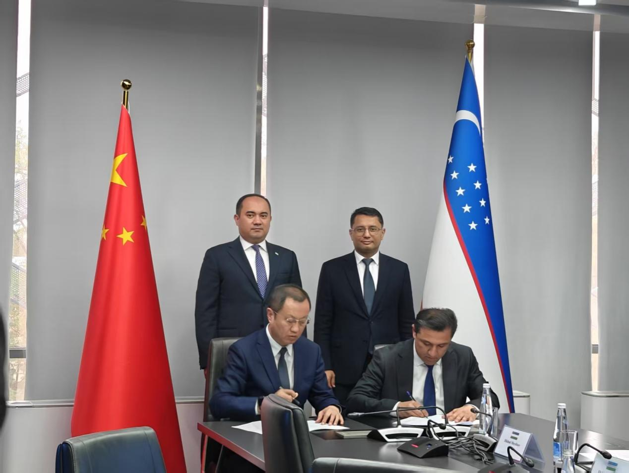 與塔什干化工學院在烏教育部進行會談,并在烏教育部第一副部長達利耶夫和能源部副部長科比洛夫見證下簽署合作備忘錄和共建聯合實驗室協議