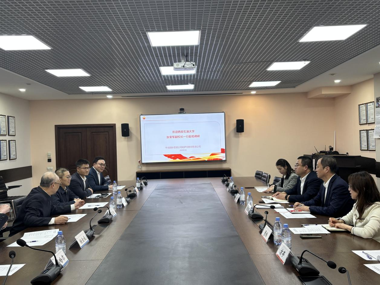 3月29日,張榮軍與華油能源集團哈薩克斯坦分公司領導和代表進行會談。華油能源集團哈薩克斯坦大區總經理張磊、哈薩克斯坦大區阿拉木圖辦事處主任朱施霖、哈薩克斯坦大區克孜勒奧爾達項目部經理袁再旺參加座談。雙方圍繞屬地化員工培訓、人才輸送、技術攻關、實驗室聯合建設等進行深入探討。華油能源集團哈薩克斯坦大區代表們還為學校面向哈薩克斯坦開展國際教育科技合作提供了寶貴的意見建議。