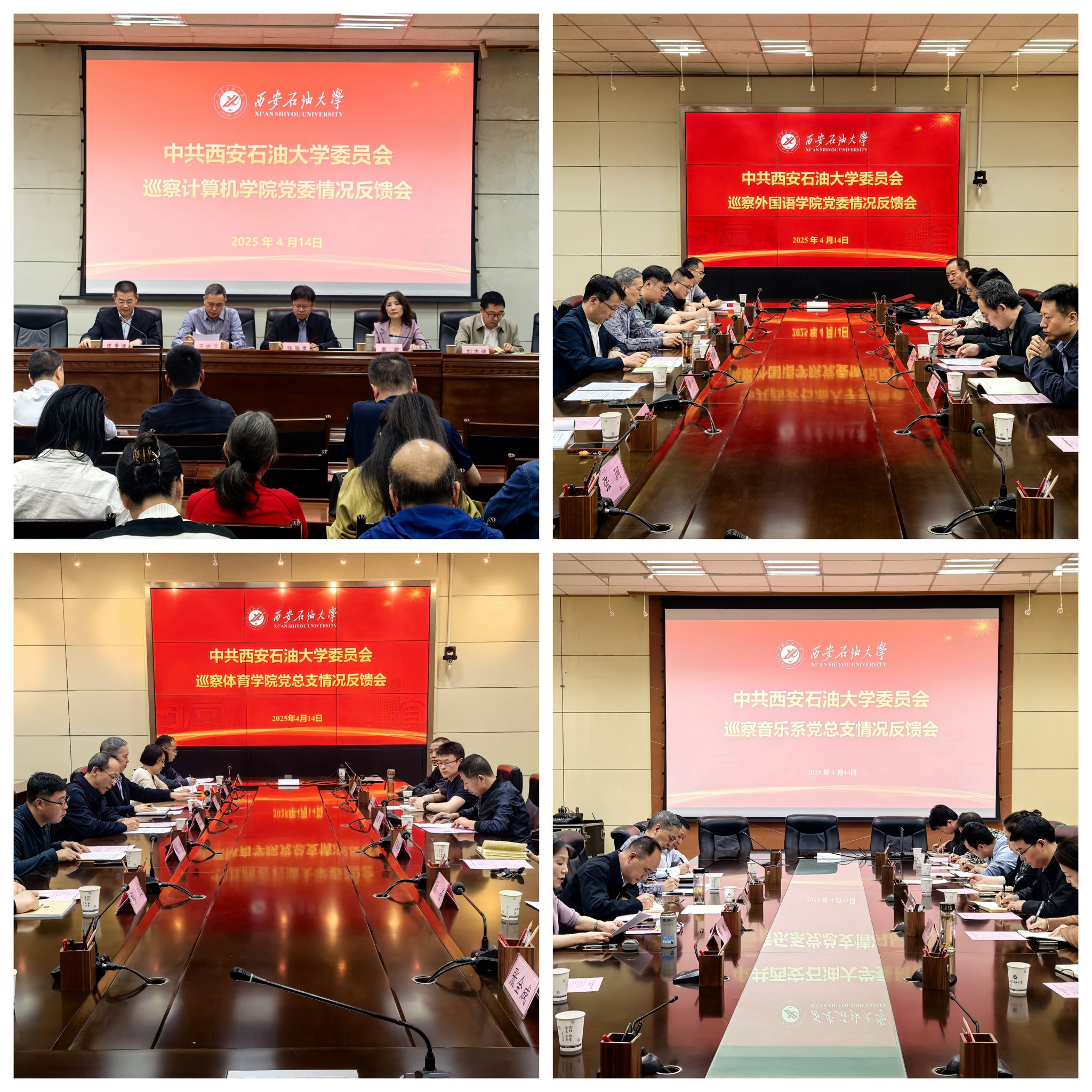 4月14日,學校召開第三屆黨委第一輪巡察情況反饋會,分別向計算機學院黨委、外國語學院黨委、體育學院黨總支以及音樂系黨總支反饋巡察情況。副校長蘇文甫、張君濤、張驍勇、趙健分別出席聯系院(系)反饋會并講話,對認真抓好巡察整改提出明確要求。