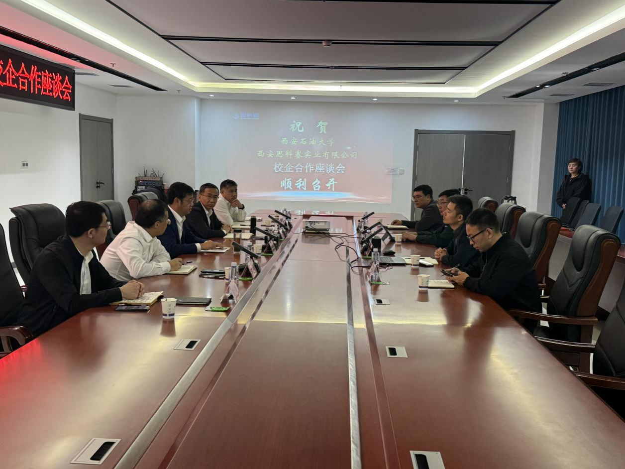 王鵬寶對學校領導的到訪表示感謝,并詳細介紹了公司的組織架構、業務范疇以及近年來取得的成績。他談到,作為校友企業,西安思科賽實業有限公司在技術創新和產品研發方面不斷突破,為雙方提供了寶貴的合作機會。他希望雙方能夠進一步完善校企協同育人機制,創新人才培養模式,構建合作新機制,助力企業不斷轉型升級。