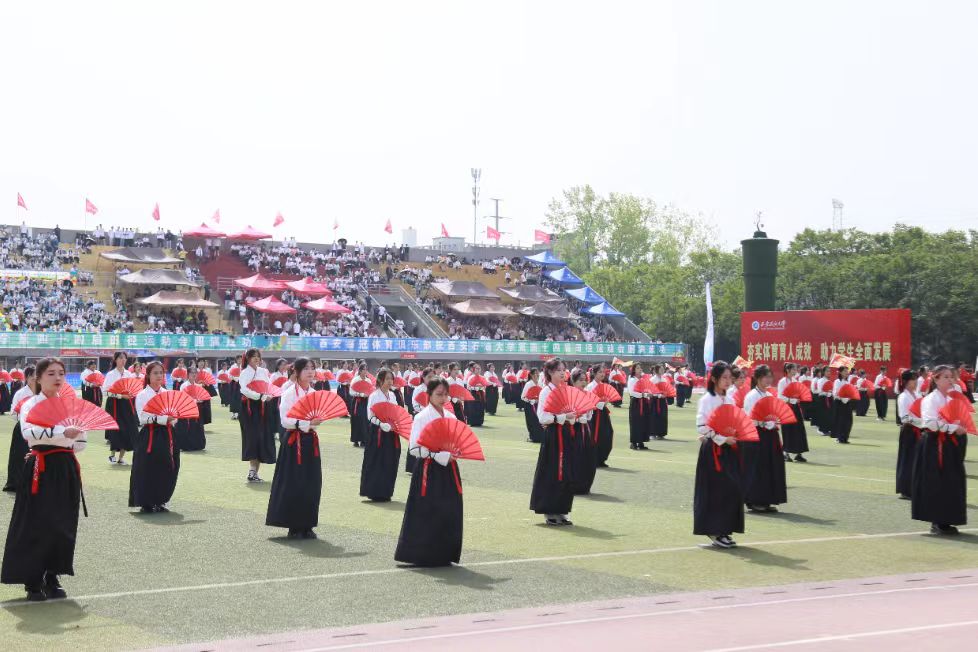 隨著開幕式的圓滿結束,大型團體舞蹈表演正式拉開運動會比賽序幕。本屆運動會邀請老中青三代同臺表演,由體育學院編排的大型音樂團體操《龍吟華夏》,后勤處幼兒園編排的舞蹈節目《躍動彩虹》,離退休處編排的歌舞節目《走進新時代》將現場氣氛推向高潮。