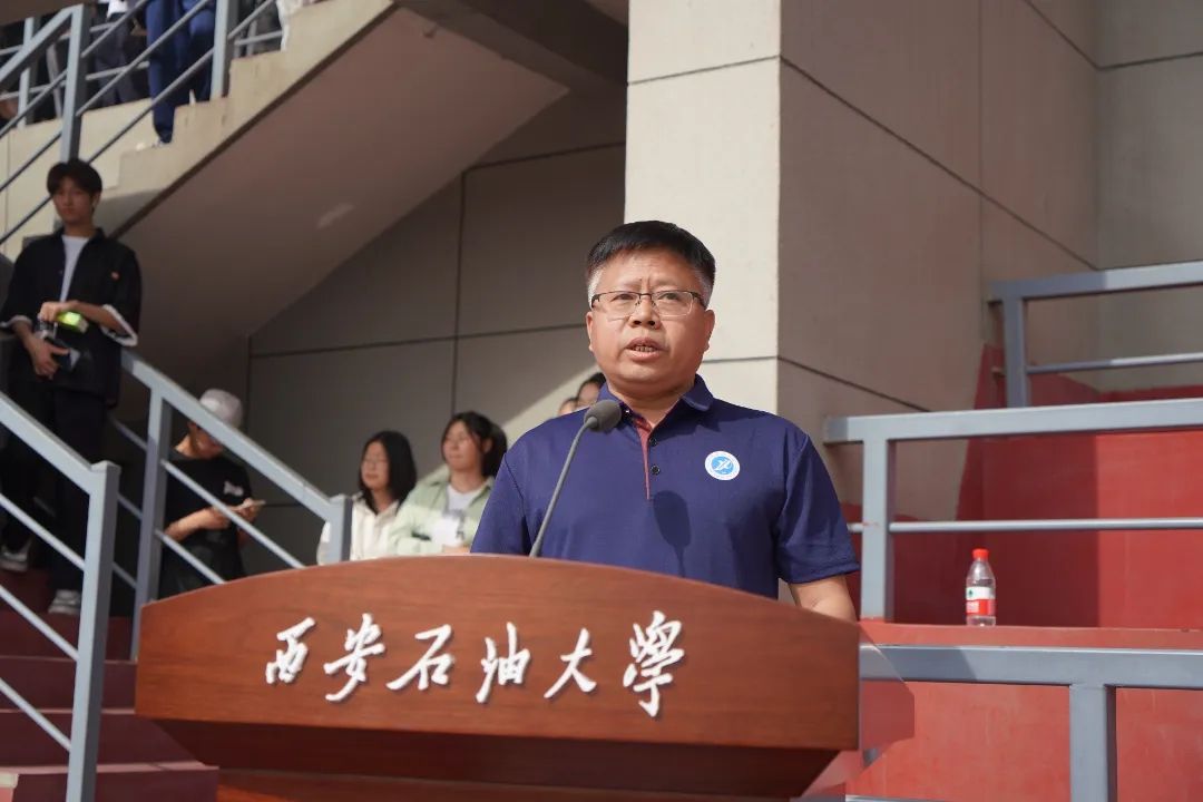 校長王進富代表學校致開幕詞。他向全體運動員、裁判員及工作人員致以崇高敬意,并回顧了過去一年學校體育事業的豐碩成果。他指出,從“三動計劃”點燃校園運動熱潮,到環校馬拉松2112名師生用腳步丈量能源熱土;從校運會刷新3項歷史紀錄,到競技團隊勇奪48項省級榮譽、首摘全國槳板聯賽金牌;從“陜西省排球訓練基地”掛牌到武術短兵培訓,西石大人始終以體育精神鑄魂育人,以實干擔當服務社會,書寫了踐行“健康中國”戰略的生動篇章。