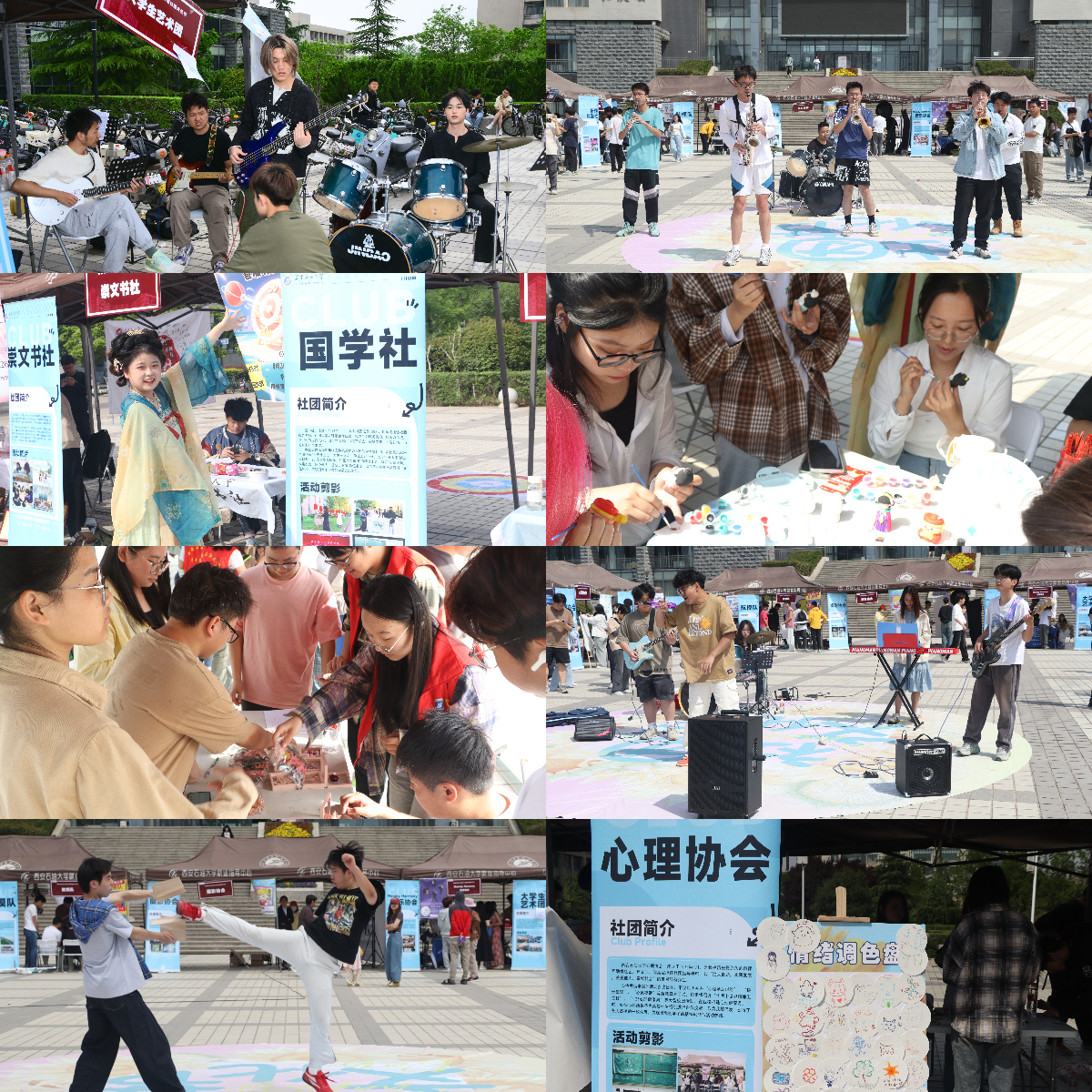 在鄠邑校區圖書館南廣場的“文化共賞長廊”外展活動現場,青春激昂,氣氛熱烈,心理協會的“解憂調色盤”,新聞社的“DIY制作”,書畫協會的“書法送祝福”,可謂妙筆生花;山海史學社、通訊社、未來運動社更是推陳出新,創新版拼圖復原、五子對弈、投壺比賽無不是競技與實力的比拼;大學生藝術團、民謠社、附點八分音樂社更是為活動現場提供了極致的視聽盛宴;崇文書社、國學社也帶來了唯美的古典美學;辯論社、演講與禮儀協會更是將語言與辭藻之魅力展現的淋漓盡致。