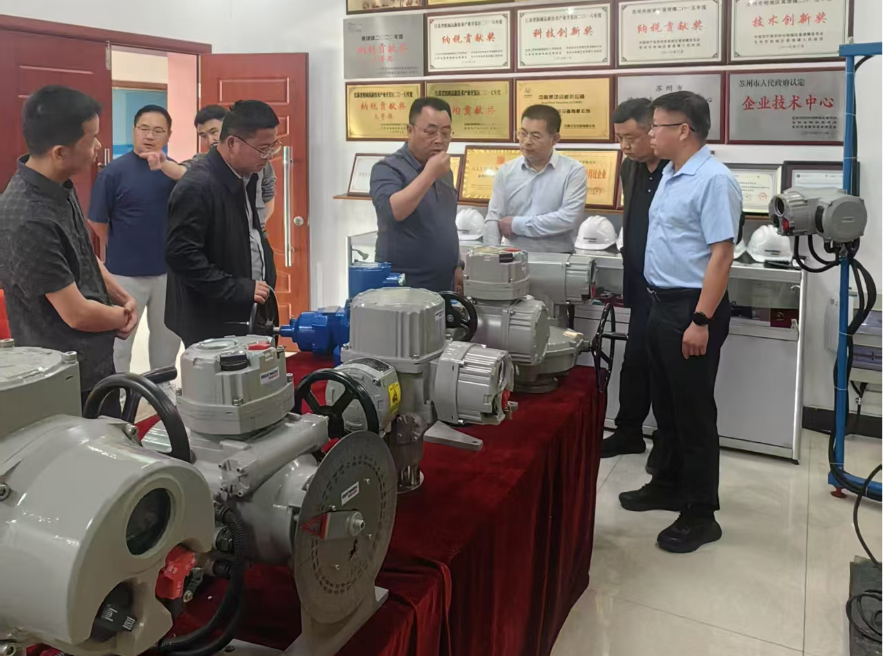在蘇州藍澤智能科技有限公司,張驍勇一行在公司董事長閆奮娥、總經理趙中偉及相關部門負責人陪同下參觀了企業生產車間和產品展廳,并就實習實踐合作、科研成果轉化、校企合作共建實驗室等進行了交流座談。