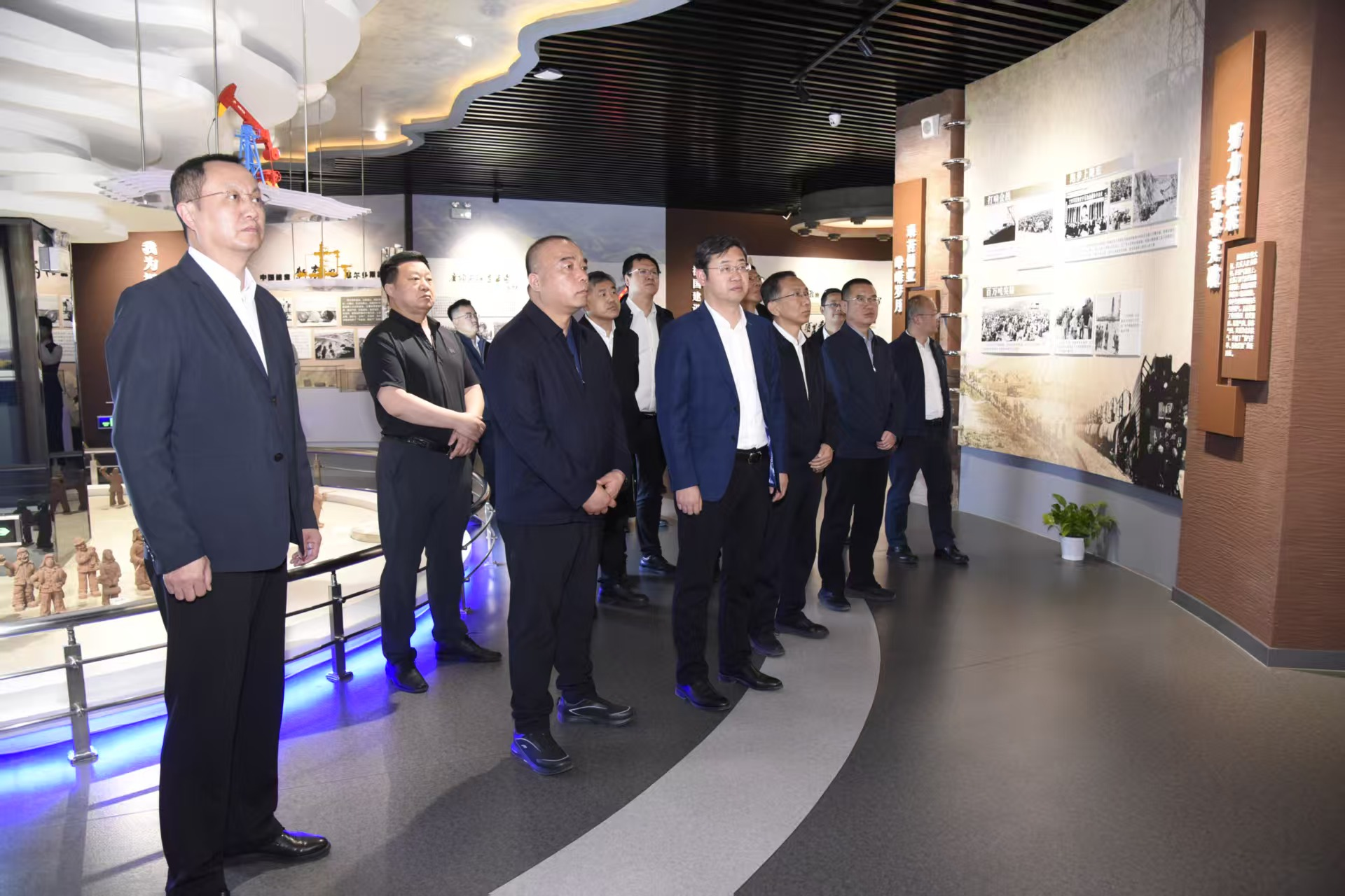 走訪期間,王進富一行與中石油長慶油田總經理助理兼隴東油氣開發分公司執行董事、黨委書記、隴東指揮部指揮李健(采油93屆校友)、隴東油氣開發分公司經理郭自新,頁巖油開發分公司經理雷啟鴻(石工97屆校友);中石油長慶油田采油三廠廠長馬宏(采油94屆校友)、紀委書記謝慶利、副總經濟師張文強;中石油長慶油田寧夏石化總經理趙峰、副總經理魏治中、紀委書記張曉陽(工業自動化99屆校友)等企業領導和相關職能部門負責人座談交流。雙方圍繞油氣開發技術攻關、共建科技攻關團隊、人才創新培養、青年教師“沉浸式”入企、在職人員學歷提升和培訓、實驗設備平臺共建共享、學生實習就業等領域實質性合作交換了意見和建議。期間還參觀了中石油長慶油田采油三廠寧夏石油展覽館、中石油寧夏石化廠史展覽館。