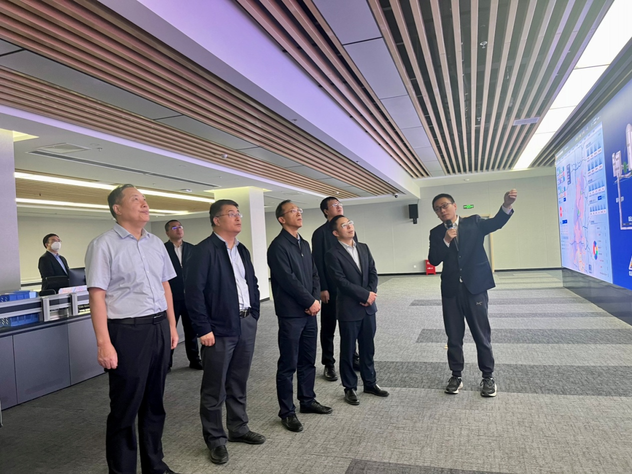 張君濤一行首先參觀了榆能集團生產監控室,觀看了礦山安全風險監測預警系統、煤礦工藝流程圖、火力發電工藝流程圖以及實時生產動態數據等,詳細了解生產狀況。
