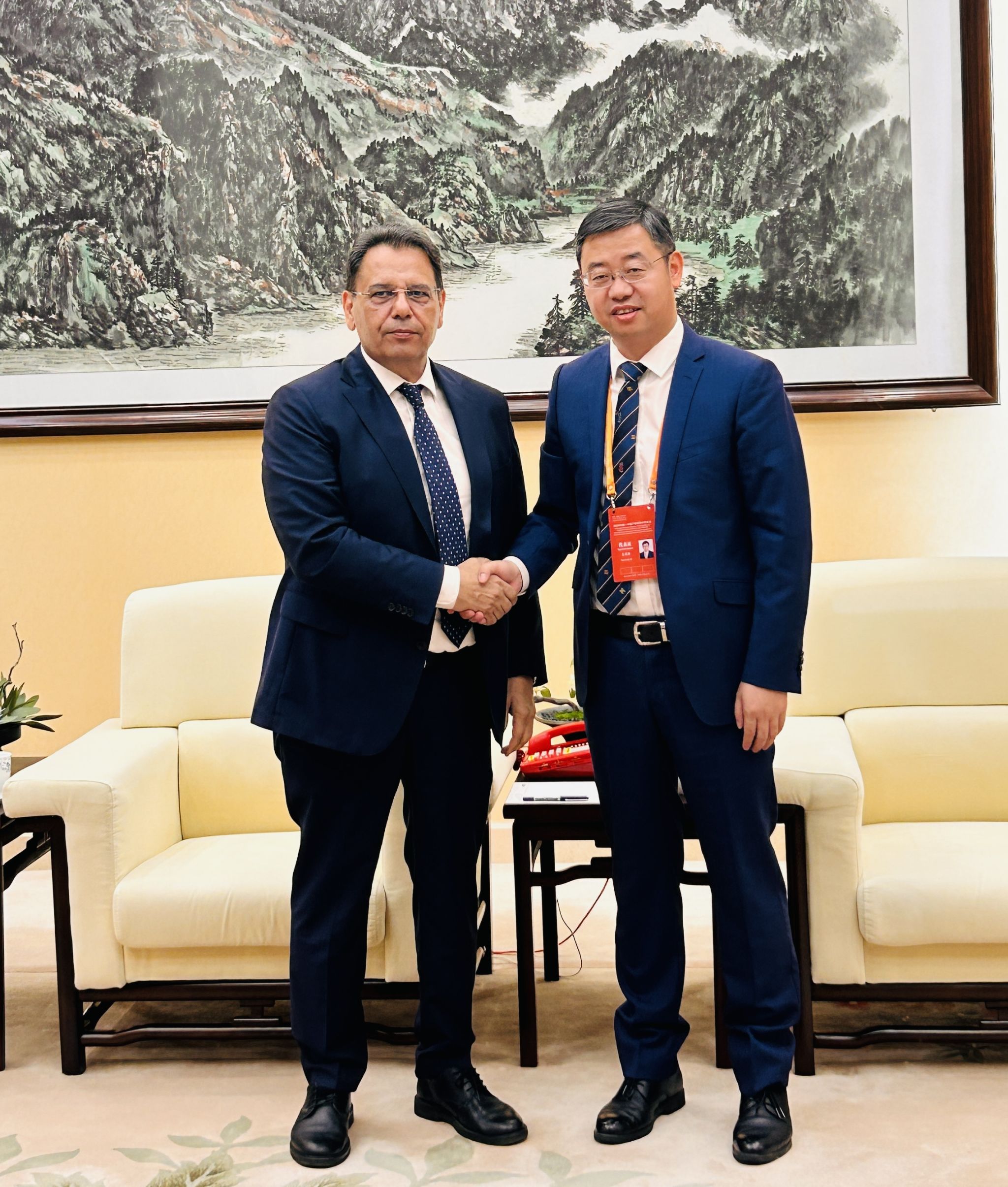 在2025中國—中亞產學研用合作會議期間,王進富與來華出席此次會議的烏茲別克斯坦高等教育、科學與創新部部長孔格拉特拜·沙里波夫(Sharipov Kongratbay)會晤。雙方就我校烏茲別克斯坦分校建設工作進行了深入交流。