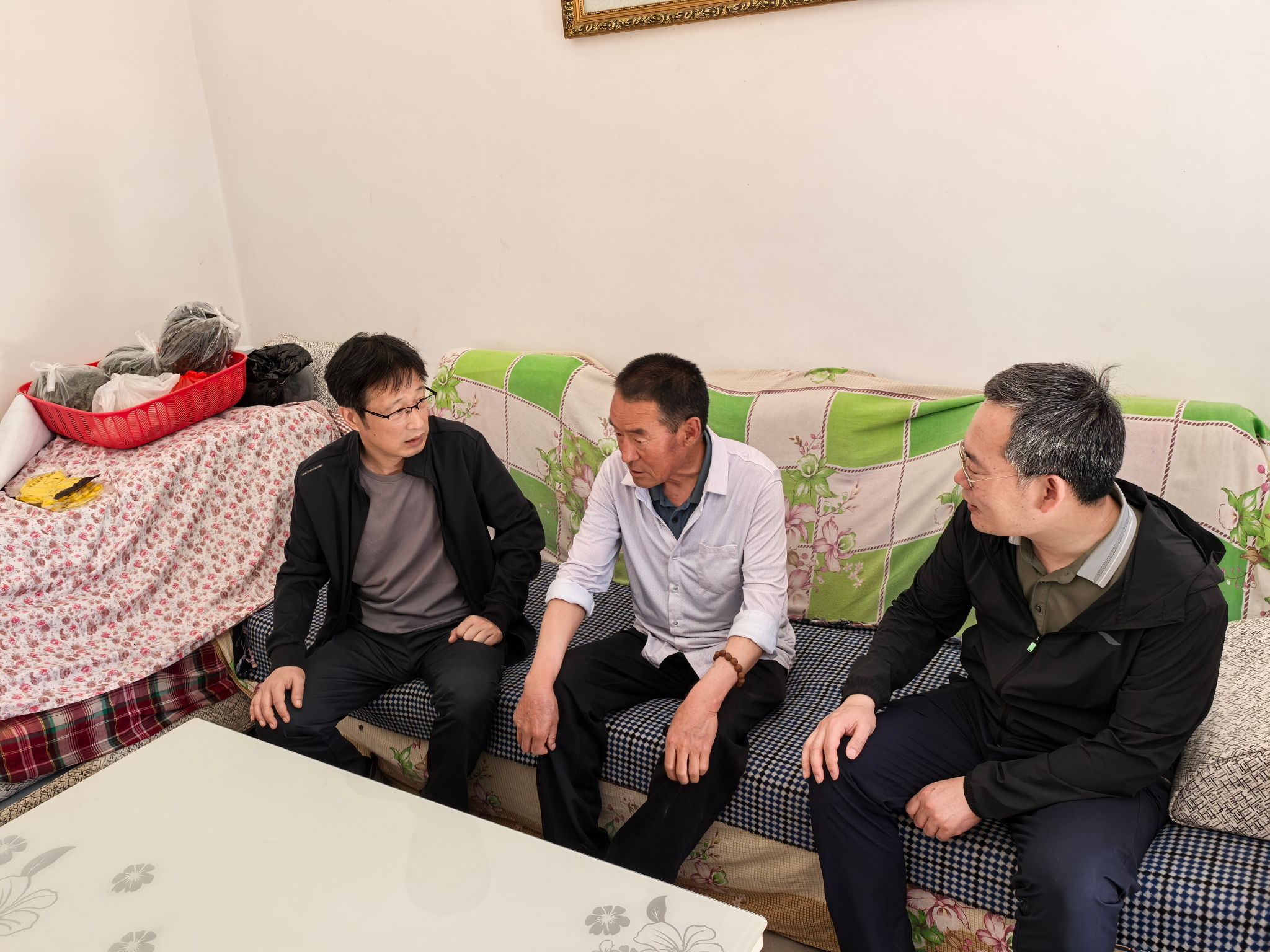隨后,蘇文甫一行前往外國語學院對口幫扶對象楊文川家入戶走訪,送去大米、面粉、食用油、牛奶等生活物資,親切詢問其身體狀況、農產品收成、經濟狀況、冬季取暖等情況,了解其子女的家庭和生活、工作情況及當前實際困難和現實需求。在與楊文川話家常、聊近況、問健康的同時,積極宣傳黨和國家的惠民政策,鼓勵他們要堅定信心,鞏固脫貧成果,邁向全面小康生活。