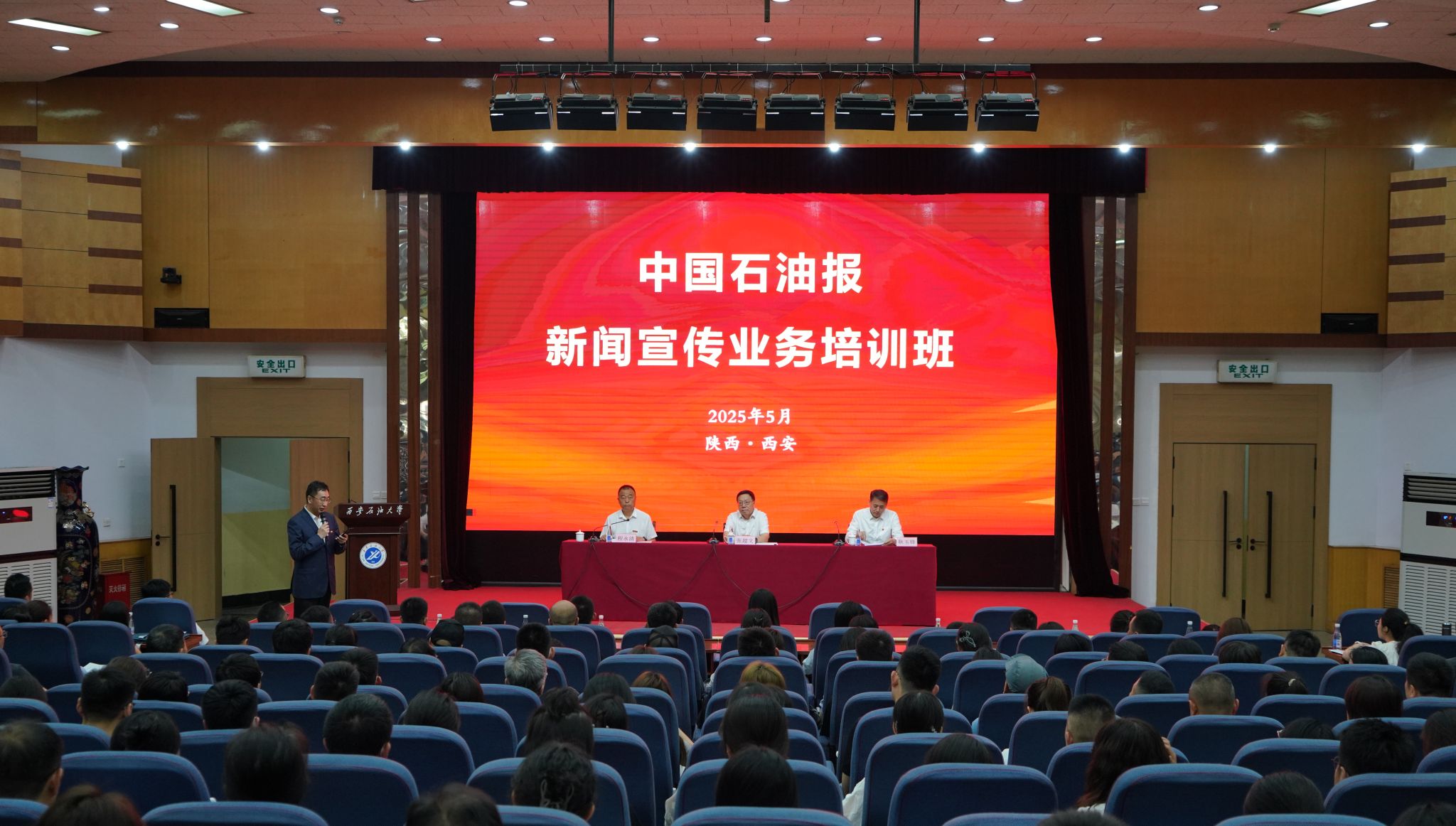 5月20日上午,中國石油報新聞宣傳業務培訓班在我校雁塔校區順利開班。中國行業報協會會長張超文、《中國石油報》社有限公司總經理耿玉鋒、西安石油大學黨委副書記程永清出席開班儀式,來自全國石油系統的222名新聞宣傳骨干參加儀式。