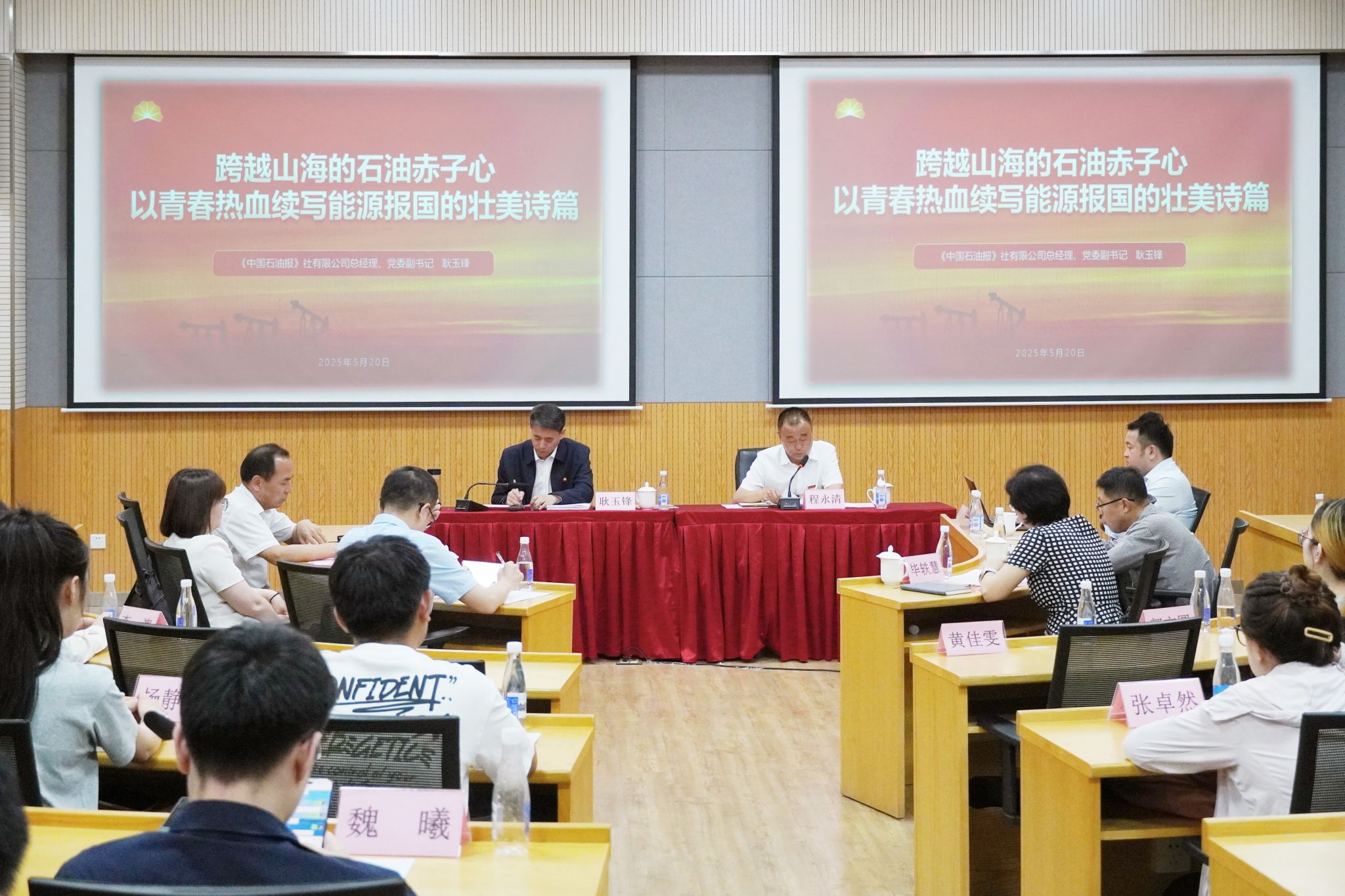 5月20日晚,學校“鐵人思政”金課第一講暨中國石油報社專家導師與學生代表交流座談會在明德校區明德樓110教室舉行,中國石油報社總經理、我校鐵人精神研究中心特約研究員耿玉鋒應邀作了題為《跨越山海的石油赤子心以青春熱血續寫能源報國的壯美詩篇》首場報告。校黨委副書記程永清出席并主持報告會。
