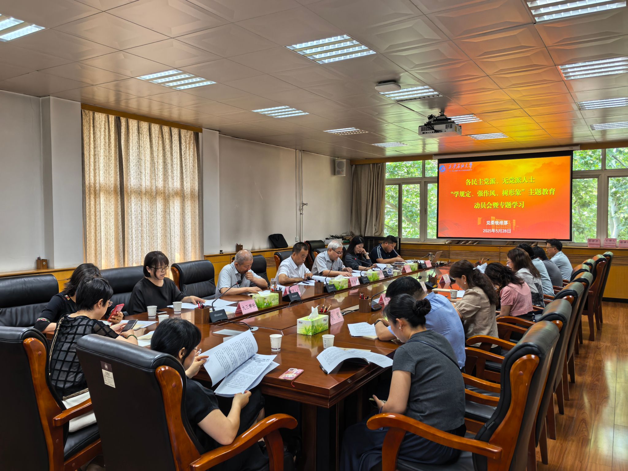 會上,黨委統戰部給與會人員配發了學習資料并進行了專題學習。集中學習了第一議題和《各民主黨派中央關于組織處理工作座談會紀要》,傳達了全省各民主黨派、無黨派人士主題教育動員部署會精神和省委教育工委《關于支持各民主黨派、無黨派人士開展“學規定、強作風、樹形象”主題教育通知》精神,通報了校黨委開展深入貫徹中央八項規定精神學習教育有關情況,對學校支持各民主黨派、無黨派人士開展主題教育相關工作進行了具體安排并觀看了警示教育片。