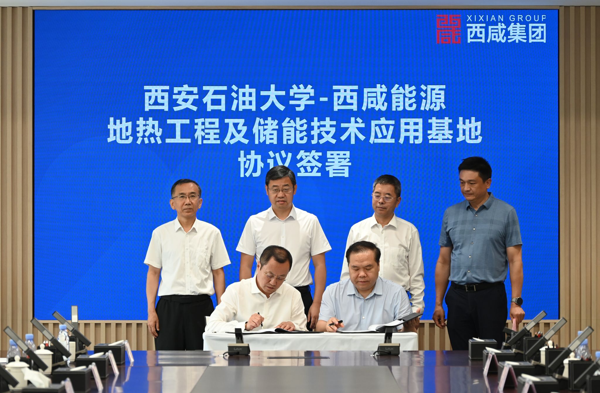 會上,張榮軍和彭小峰分別代表校企雙方簽署了共建西安石油大學-西咸能源地熱及儲能工程技術應用基地合作協議書。