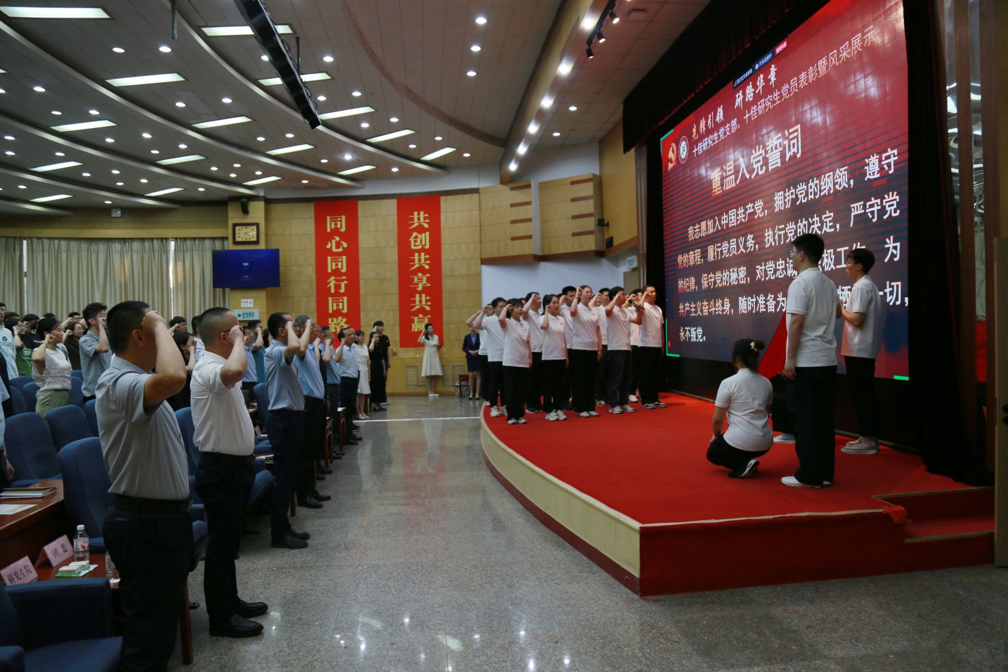 展示結束后,現場全體黨員在“雙十佳”研究生黨員的帶領下重溫入黨誓詞。大家舉起右拳,莊嚴宣誓,再一次用入黨誓詞洗滌心靈,激發為共產主義奮斗終生的昂揚精神。