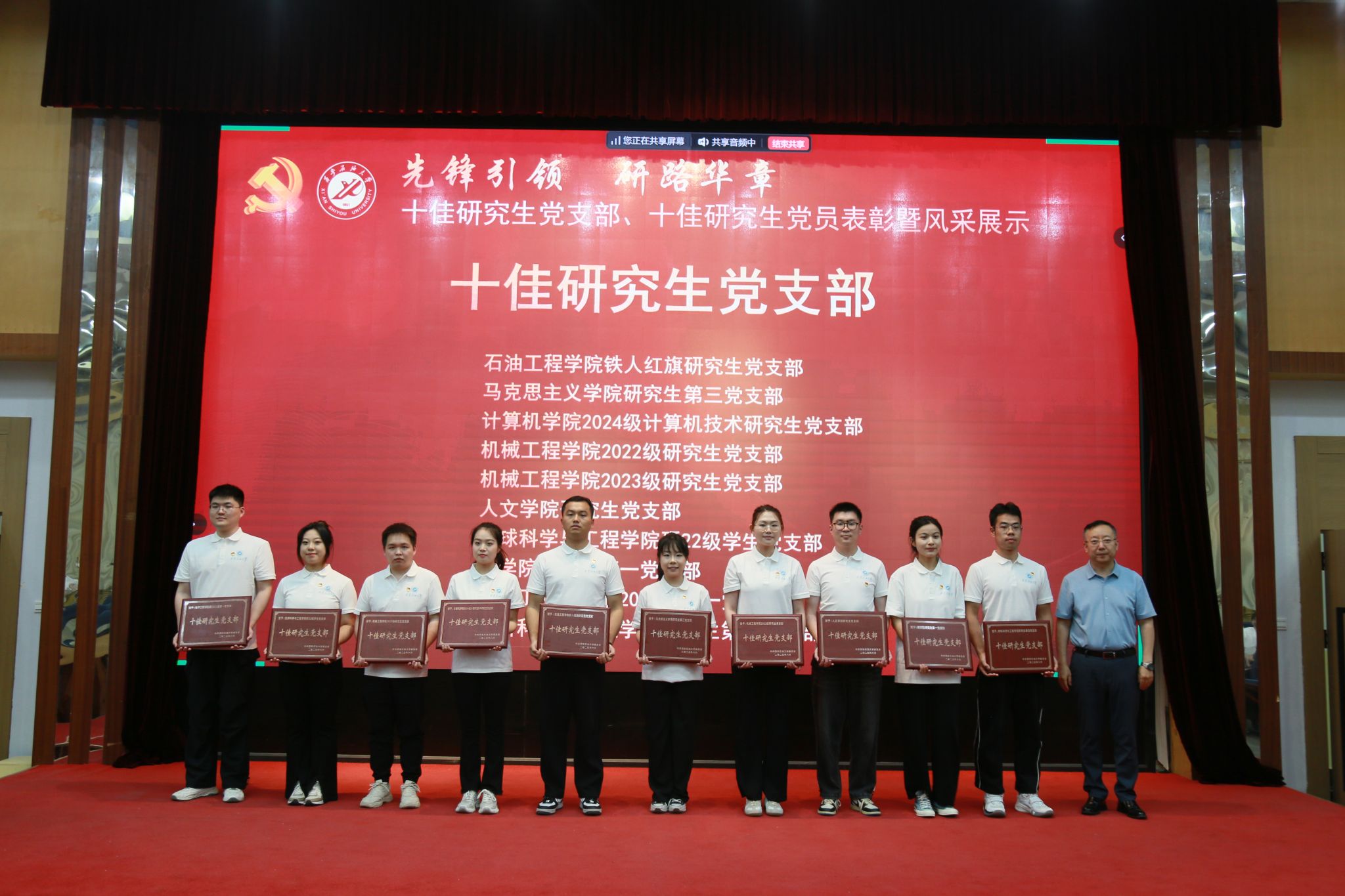 “先鋒引領 研路華章”十佳研究生黨支部、研究生黨員表彰暨風采展示活動,充分展現了近年來我校研究生黨建工作成績,通過選樹研究生黨支部與黨員典型、展示青春風采,進一步激發了研究生基層黨組織的凝聚力與戰斗力,激勵廣大研究生黨員以更昂揚的姿態、更務實的作風,踔厲奮發、篤行不怠,努力成為可堪大任的高層次人才。未來,學校研究生黨建和思想政治工作將聚焦立德樹人根本任務,強化黨建創新,深化“黨建+科研”、“黨建 + 育人”融合機制,讓紅色基因成為滋養研究生成長成才的精神底色,為學校事業高質量發展注入“紅色動能”,在中國式現代化新征程中彰顯西石大研究生擔當。