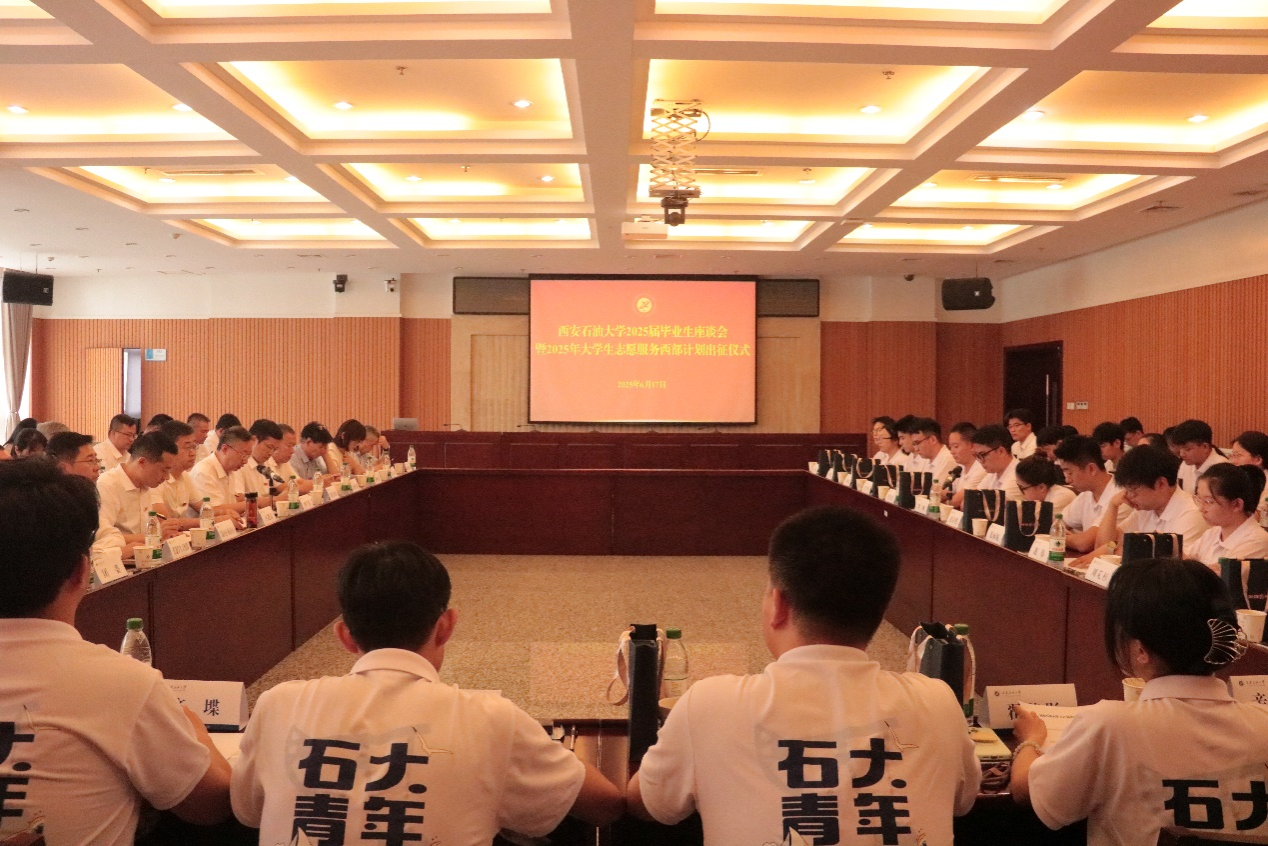 為扎實做好畢業生離校服務工作,營造健康和諧、文明有序的畢業離校氛圍,搭建學校與畢業生溝通交流的平臺,廣泛傾聽畢業生需求以及對學校各項工作的意見和建議,推動學校人才培養工作內涵式發展,進一步增強學生強國奮斗、愛校榮校之情,鼓勵和支持我校畢業生到西部去、到基層去、到祖國最需要的地方建功立業,學校精心組織本次會議。希望全體2025屆畢業生牢記囑托、勇毅前行,傳承弘揚延安精神、石油精神和鐵人精神,胸懷投身科技攻關、扎根基層一線、服務國家能源戰略的遠大理想,在扎根實干中實現理想抱負,在學思踐悟中強化責任擔當,在終身學習中書寫人生華章,立志為中華民族偉大復興貢獻西石大學子的智慧和力量。