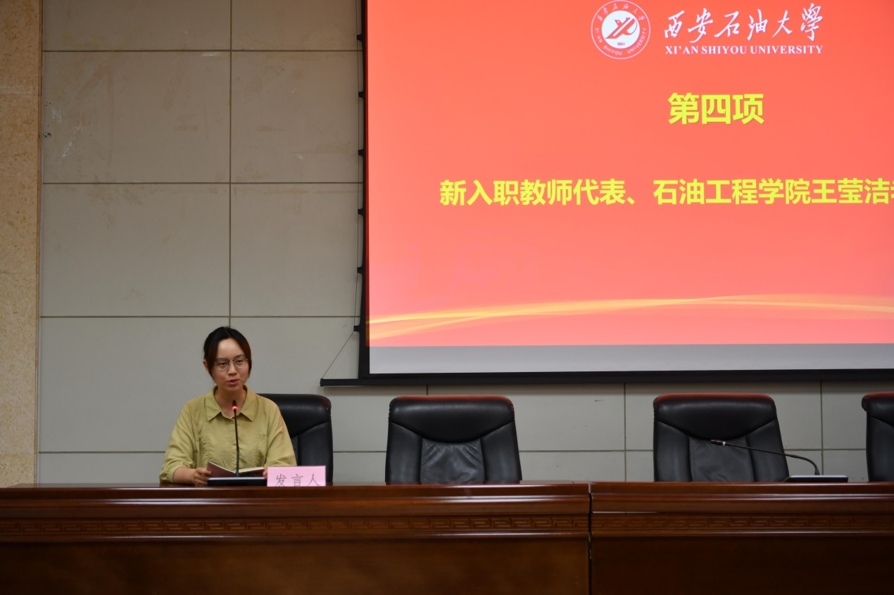 新入職教師代表、石油工程學院王瑩潔老師代表新入職教師做交流發言,表達了為建設高水平教學研究型大學做貢獻的決心和信心。