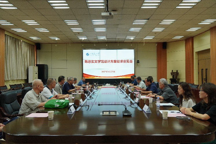 6月23日下午,學校在雁塔校區第二會議室召開陳忠實文學館設計方案征求意見會。陜西省作家協會副主席李國平,陜西省作家協會主席團顧問、黃堡書院院長和谷,《陜西工人報》主編郝振宇,作家雷電、商子秦、許作良、李下叔等陳忠實先生生前摯友,陜西廣播電視臺新聞中心記者、陳忠實先生之子陳海力,應邀參會。校黨委副書記程永清出席會議。黨委宣傳部、人文學院相關負責人,教師代表,設計公司代表等參加會議。