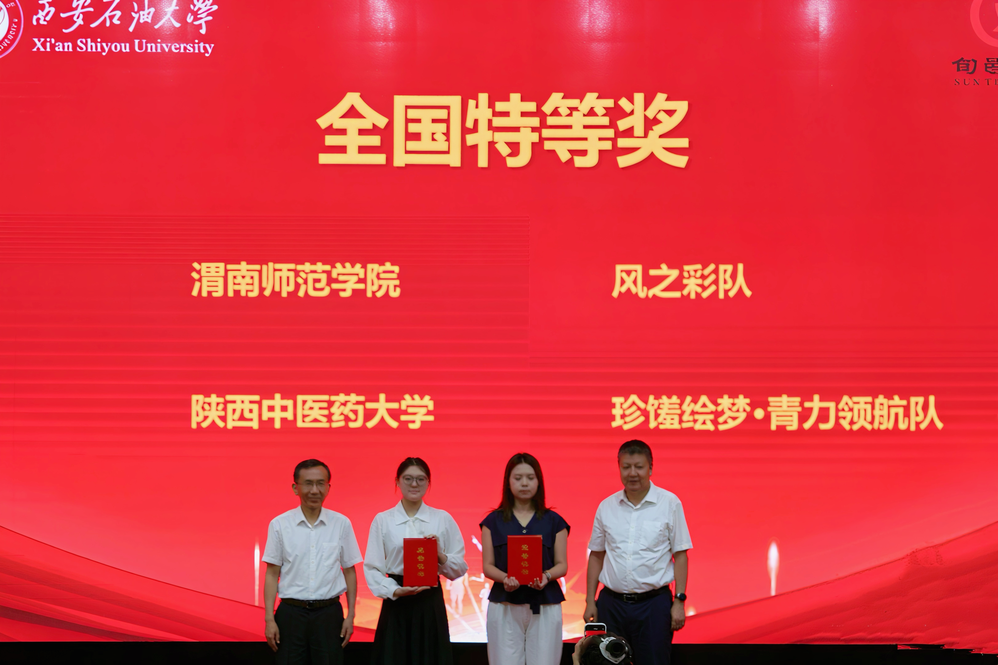 西安石油大學經濟管理學院院長吳勛宣布獲獎名單,其中渭南師范學院“風之彩隊”、陜西中醫藥大學“珍饈繪夢·青力領航隊”榮獲特等獎,西安石油大學“蘋什么不隊”等4支隊伍獲一等獎,陜西科技大學等5所高校獲最佳組織獎,另有12支隊伍分獲單項獎。