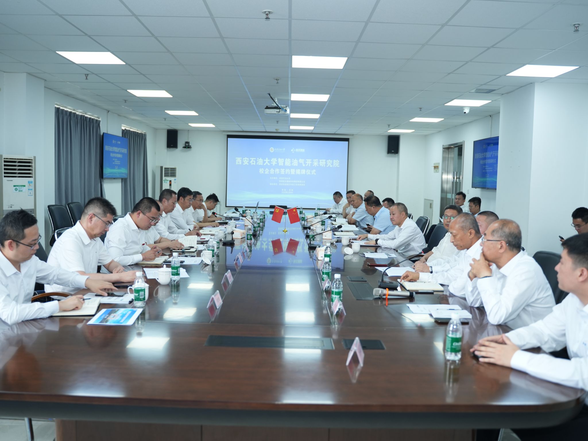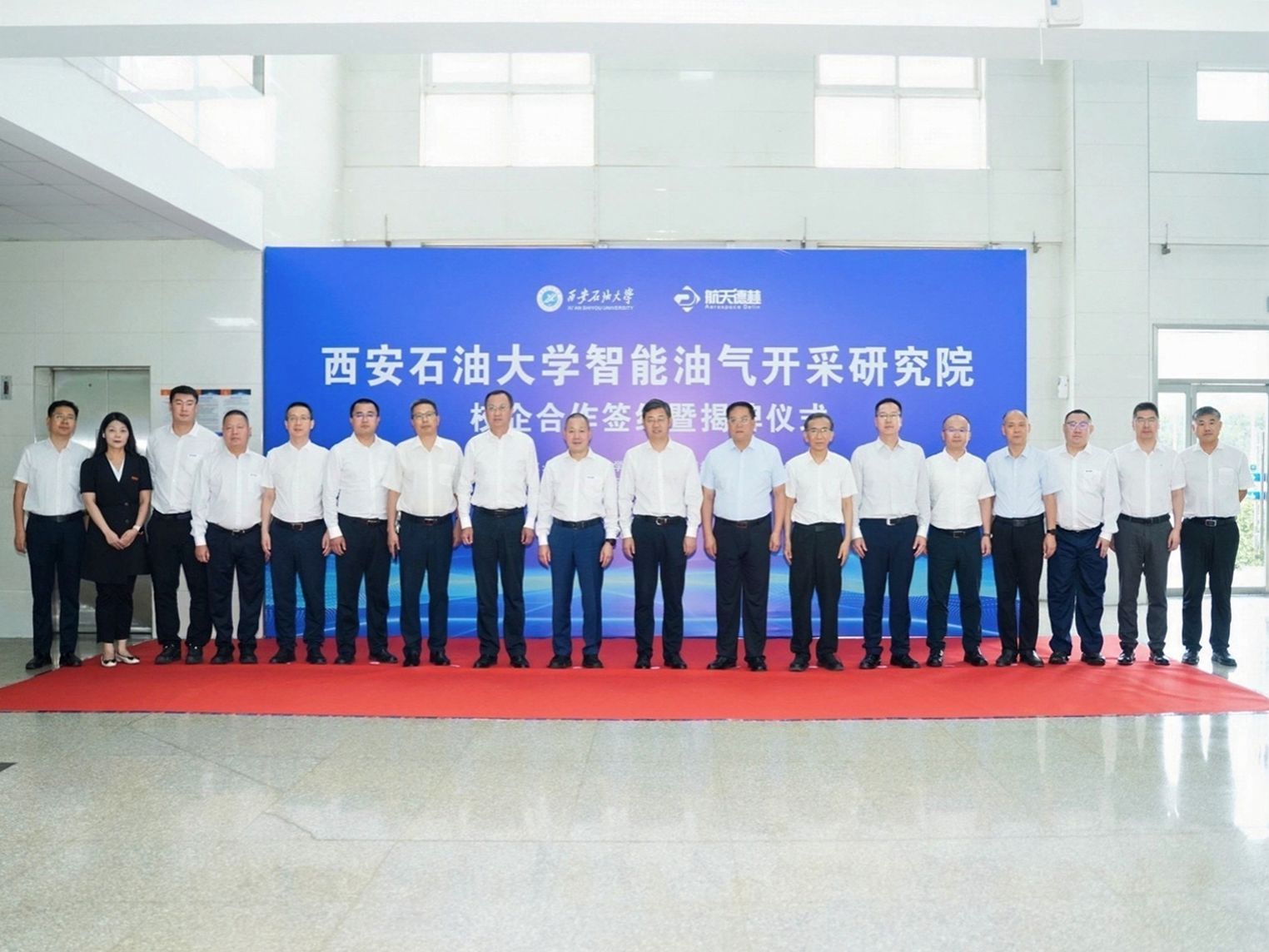 高陵區政府辦公室、科技工信和商務局有關負責同志;航天德林智能管事業部、辦公室、科研管理部有關負責同志;我校學生工作部(就業創業指導中心)、科研處、研究生院、校友工作與合作交流處、石油工程學院、機械工程學院、材料科學與工程學院負責同志參加會議。