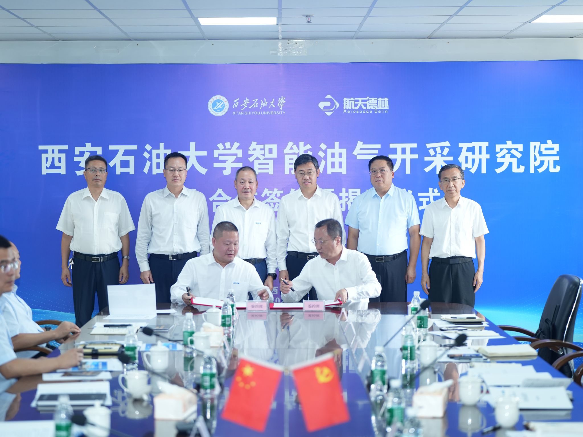 7月8日下午,我校與陜西航天德林科技集團有限公司(以下簡稱“航天德林”)在企業會議室舉行共建智能油氣開采研究院合作協議簽署暨揭牌儀式。高陵區委副書記、區長鄒曉剛,高陵區委常委、常務副區長陳靈,高陵區政協黨組副書記、副主席、西安涇河工業園黨工委書記、管委會主任譚勝利,航天德林集團董事長林忠燦,總經理林宗南,副總經理林本常、林辰厚、付剛、李順宏以及我校校長王進富,黨委委員、副校長張榮軍出席會議。會議由我校黨委副書記張木主持。