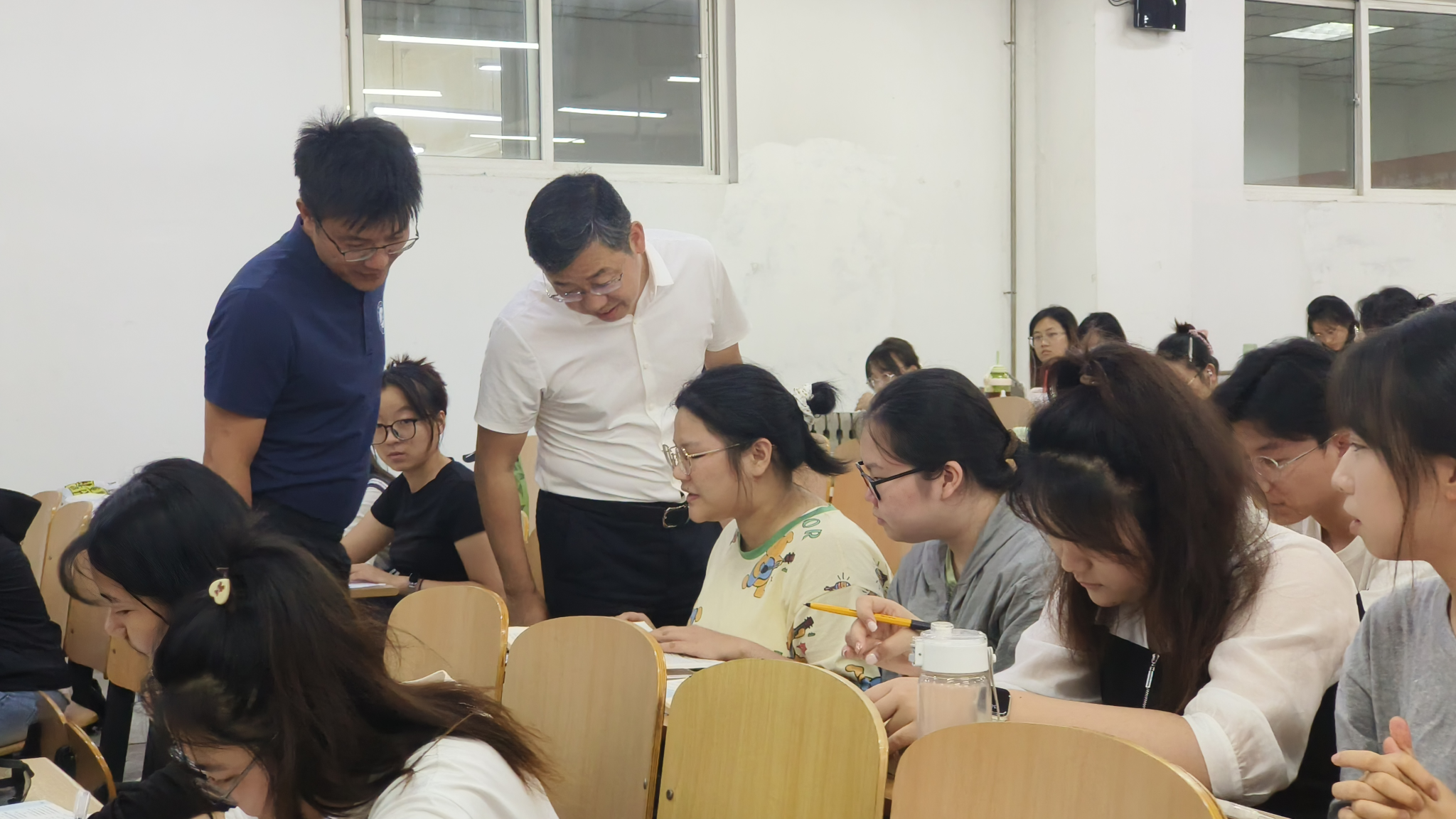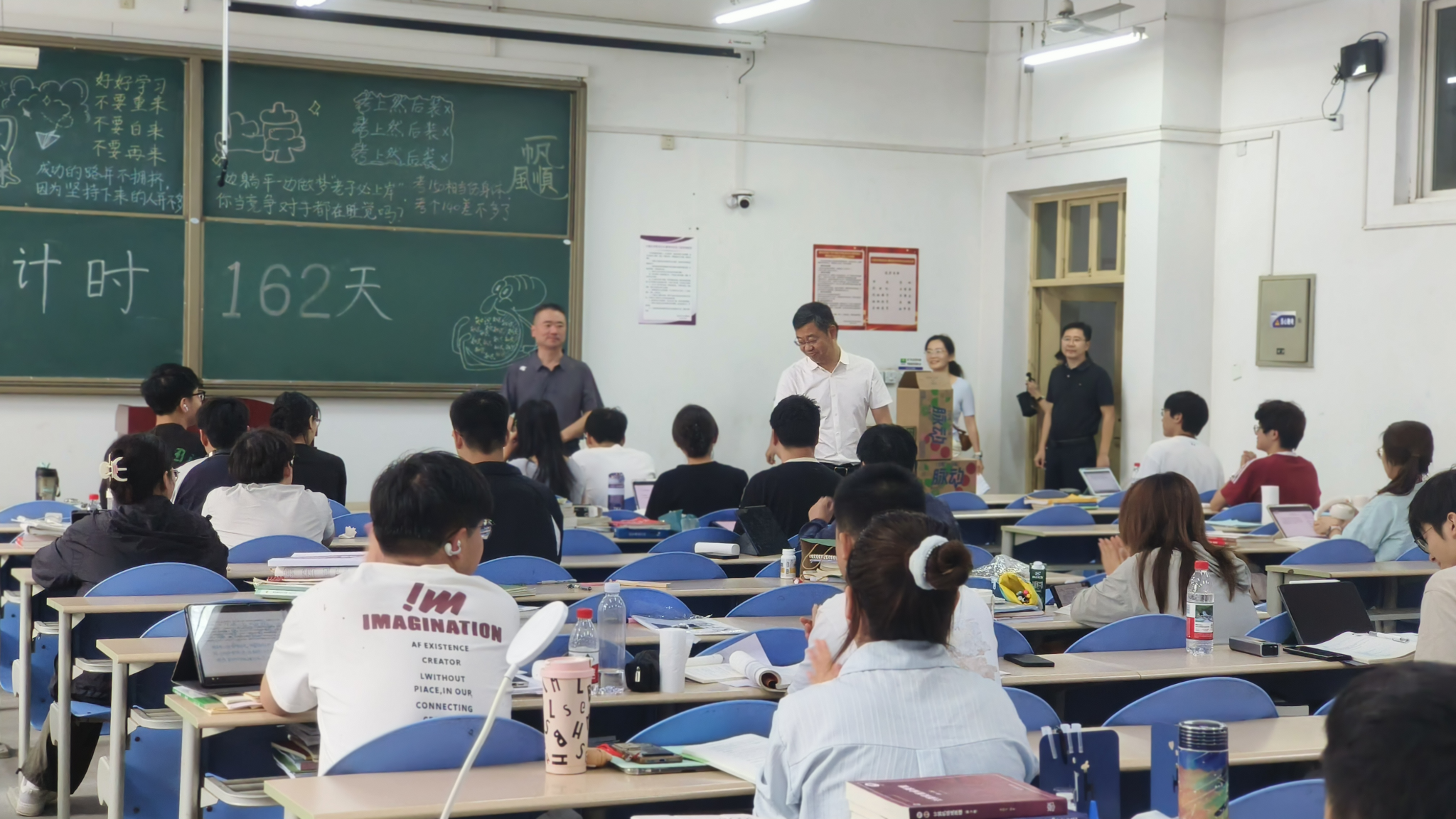 王進富一行首先來到博思樓考研自習室,為正在緊張備考的同學們帶去親切的問候和鼓勵,并為大家準備了清涼解暑的飲品。他詢問同學們的備考情況、目標院校和專業選擇,并對同學們不畏酷暑、勤奮學習的精神給予表揚和肯定。他鼓勵大家要堅定信心、明確目標,發揮西石大人不怕苦、不怕累的精神,積極科學備考,同時要在備考的過程中勞逸結合,用飽滿的熱情和積極的心態來面對未來考研道路上的挑戰。
