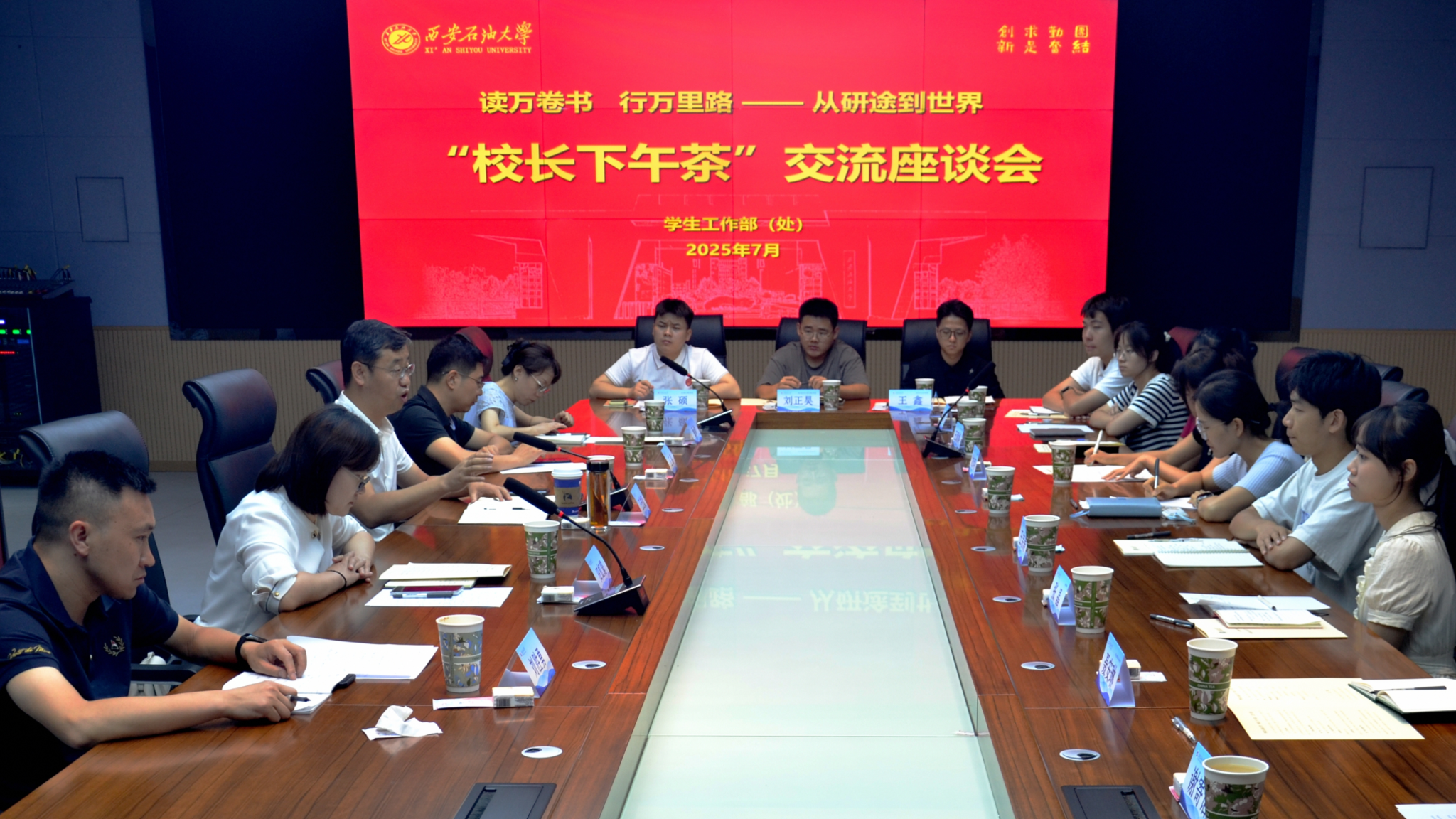 7月11日下午,校長王進富深入鄠邑校區看望慰問留校復習考研學生,并在博覽樓116教室參加以“讀萬卷書 行萬里路—從研途到世界”為主題的校長下午茶活動。學生工作部(處)、教務處、研究生工作部和國際合作與交流處負責人參與上述活動。
