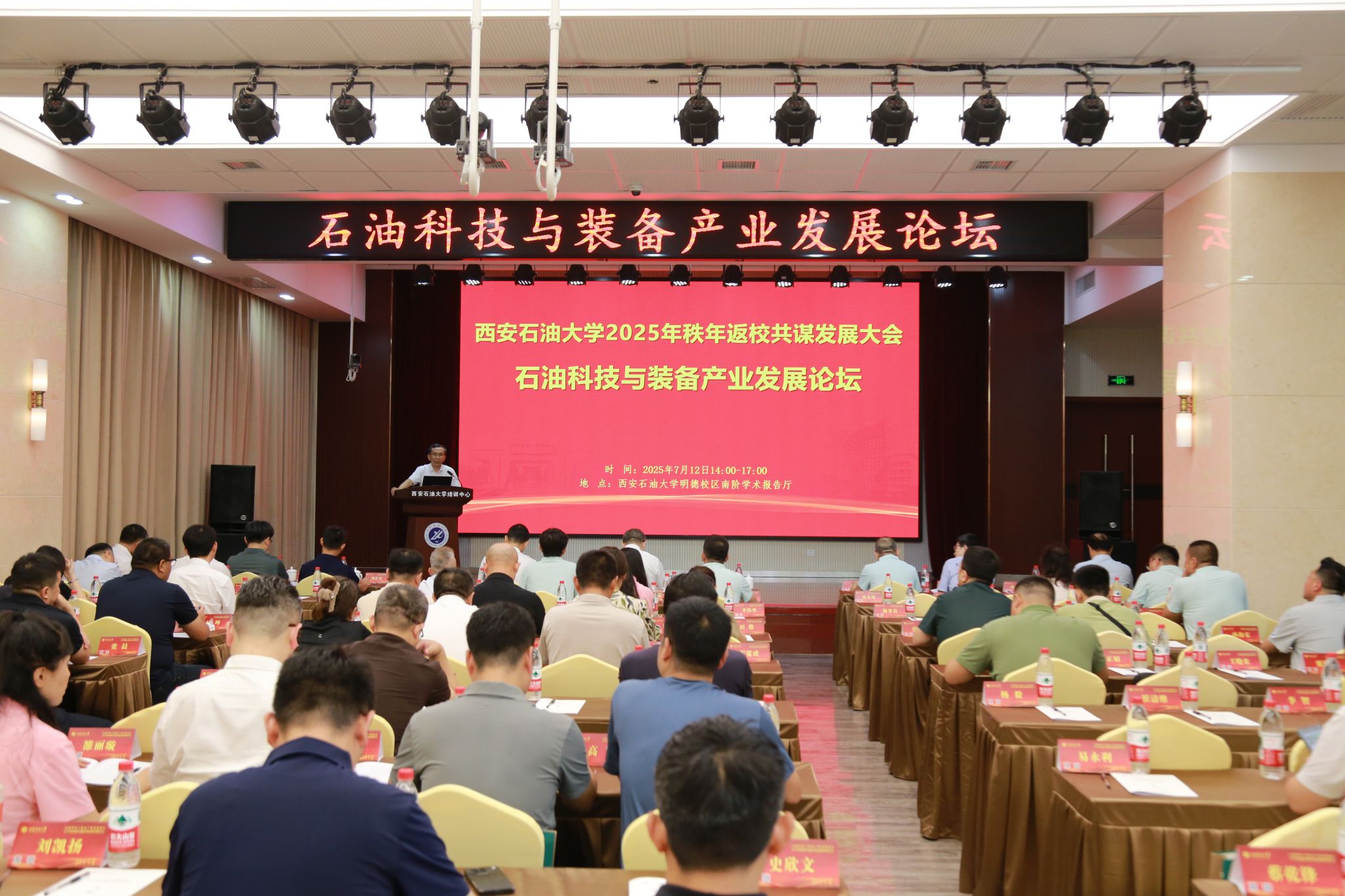 7月12日下午,我校在明德校區舉辦石油科技與裝備產業發展論壇。我校黨委書記常江、校長王進富,黨委副書記張木以及來自全國80余家校友企業代表出席活動。