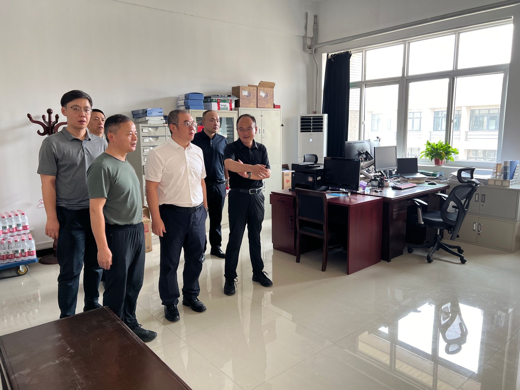 7月19日上午,校黨委書記常江帶隊檢查學校行政主體搬遷情況。校黨委委員、副校長趙健,相關職能部門負責人陪同檢查。