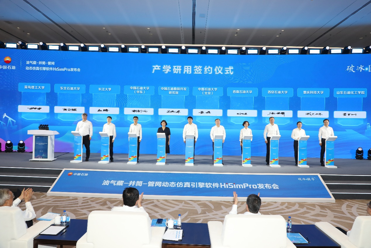 7月29日,中國首套地下地面一體化(油氣藏-井筒-管網)動態仿真引擎軟件HiSimPro在北京發布。中國石油集團公司總會計師周松及相關石油企業領導出席會議,我校副校長張榮軍應邀出席發布會。