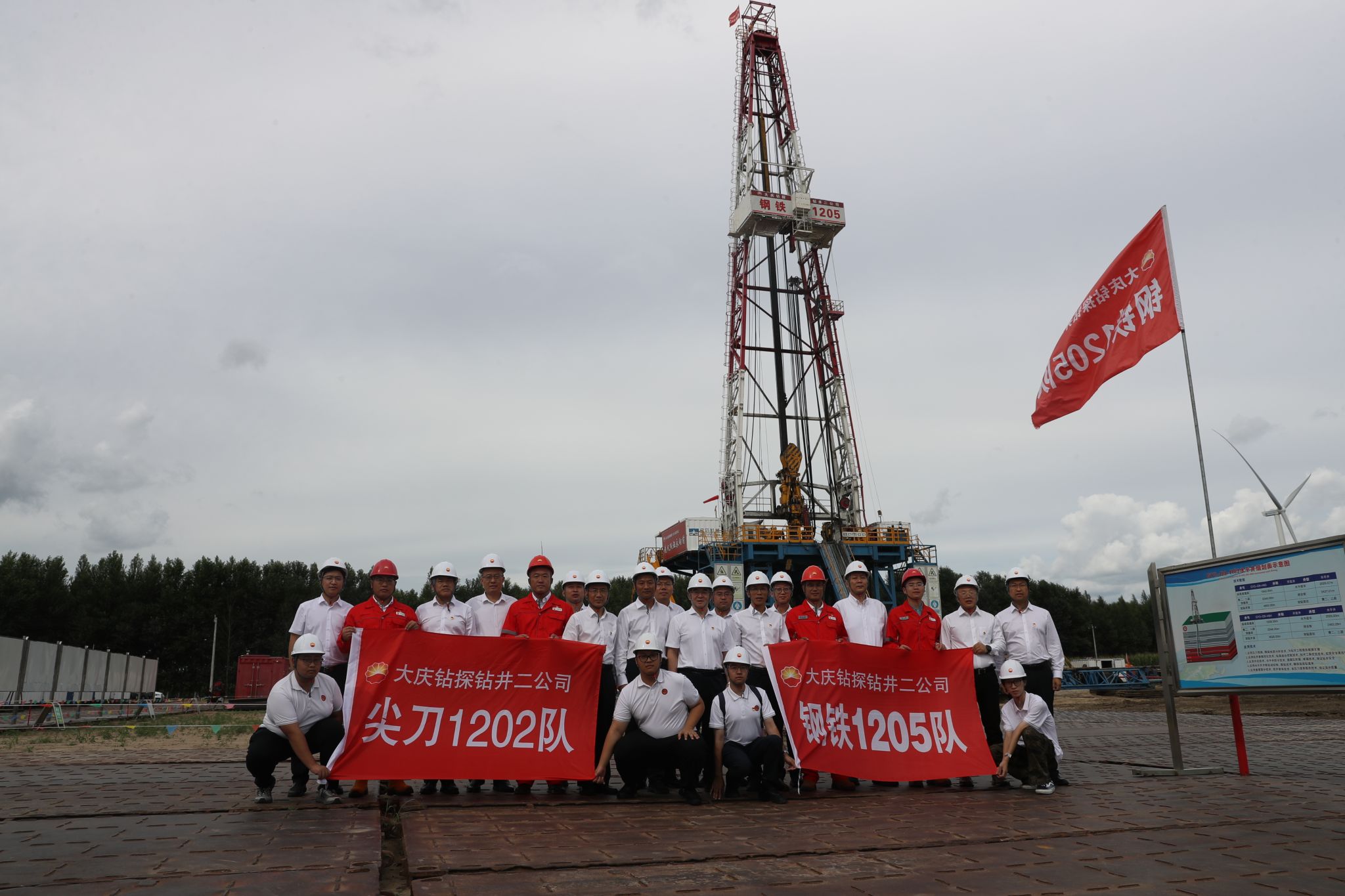 大慶鉆探鉆井二公司1205鉆井隊是鐵人王進喜生前帶過的隊伍,是鐵人精神的發源地,1953年在玉門油礦組建,1960年參加大慶石油會戰。現有員工40人、黨員21人,主要承擔油田調開井、特殊工藝井、頁巖油井施工任務。現任隊長段永堅、黨支部書記趙潘。