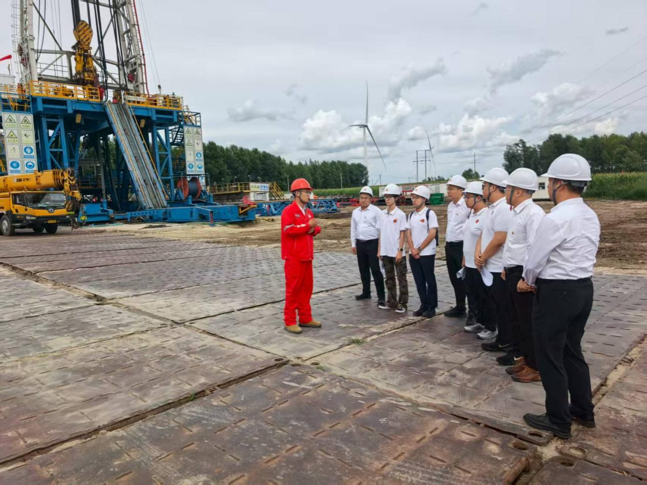 1205鉆井隊隊長段永堅在鉆井工作現場為師生代表講授了一堂別開生面的生動黨課。這不僅是一次鐵人精神的深度傳播,更是一場將紅色基因融入血脈的深刻實踐,讓師生們在鉆井平臺的轟鳴聲中,真切觸摸到石油精神的厚重根基。