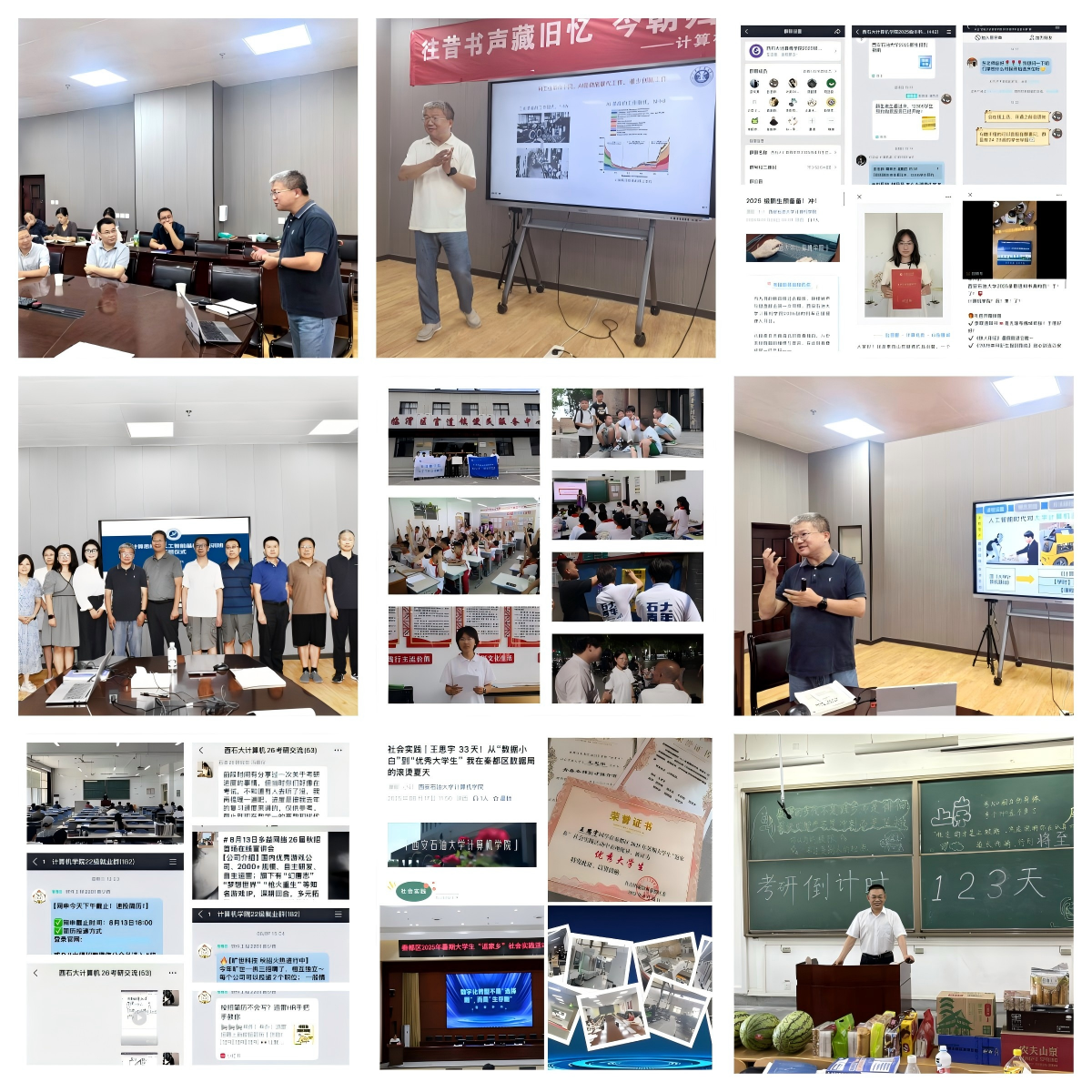 暑假期間,學院錨定新一輪學科評估目標,助力學校博士點申報,倡導老師們利用暑假黃金期,凝心聚力開創科研、教學、育人等學院高質量發展的新氣象。學院組織教師赴石油石化單位等科研一線洽談合作項目、開展科技攻關80余人次,學院教師堅守在實驗室寫論文、申基金、編代碼。組織教師參加各類會議和培訓70多人次,學院舉辦了為期5天的“計算思維與人工智能基礎”專題培訓,為開好人工智能概論課打下了堅實的基礎。學院領導赴鄠邑校區看望慰問留校考研學生,2022級180多名學生奮力備考研究生。學院組織學生赴渭南等地開展實踐活動,前置新生教育管理服務,全面助力學生成成才。