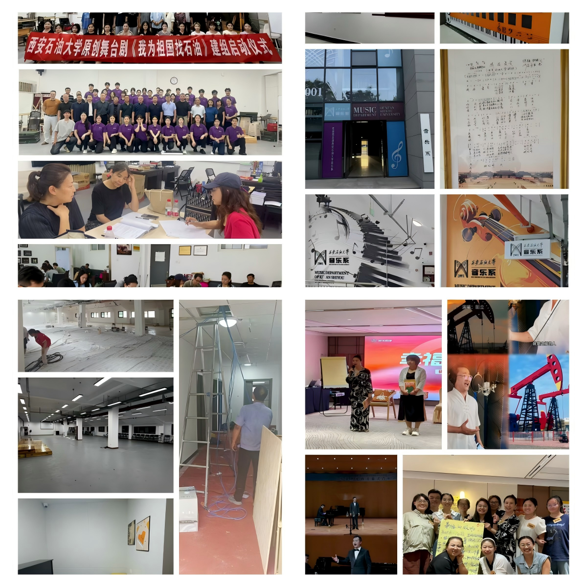 一是學科建設結碩果。原創音樂劇《我為祖國找石油——新中國第一支女子測量隊》獲批陜西省藝術創作重大資助項目,暑期團隊封閉打磨劇目,確保高質量完成首演。二是教學服務再升級。完成鄠邑校區琴房“一卡通”預約系統建設、琴房聲學構建及舞蹈/瑜伽教室維修升級,持續提升教學服務水平。三是環境育人潤無聲。設計鄠邑校區辦公及公共空間文化宣傳展示,通過墻體和展板呈現發展歷程、辦學特色等,營造濃郁藝術氛圍,增強師生歸屬感。四是科研實踐交流齊推進。積極推進與陜西戲曲研究院深度合作;校合唱團成功入選國家大劇院演出季,對接《云橫秦嶺》北京演出事宜;教師榮獲“云崗杯”國際民族器樂展演金獎;精心錄制的《石油人的歌》MV,以藝術之聲禮贊石油精神;10余人次參加研修班,提升教師隊伍素養。