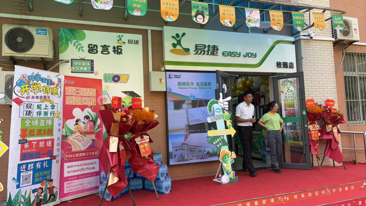 致辭結束后,戴盡良宣布西安石油大學易捷校園店正式開業,張木與戴盡良、韓光輝等嘉賓共同上臺剪彩。現場禮花綻放、彩帶飛揚,掌聲雷動,一間嶄新的校園便利店,正悄然見證著校企合作從傳統領域向生活服務領域的延伸和創新。