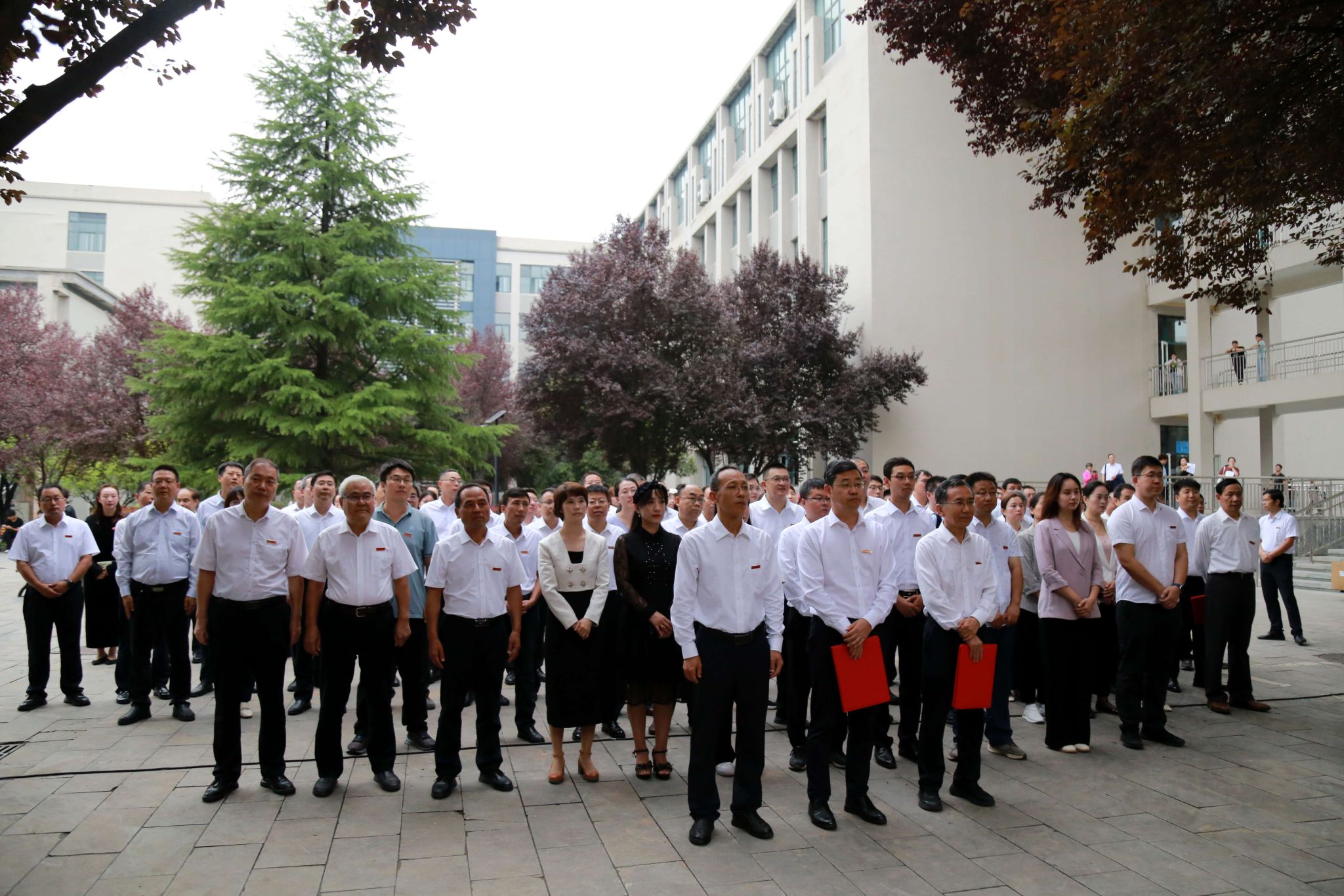 9月10日下午,學校在鄠邑校區朝源廣場舉行孔子銅像揭幕儀式。校長王進富、校黨委副書記張木、副校長張君濤,以及教師節受表彰教師代表、在鄠邑校區工作的正處級干部與學生代表共計150余人出席了本次活動。儀式由校黨委副書記程永清主持。