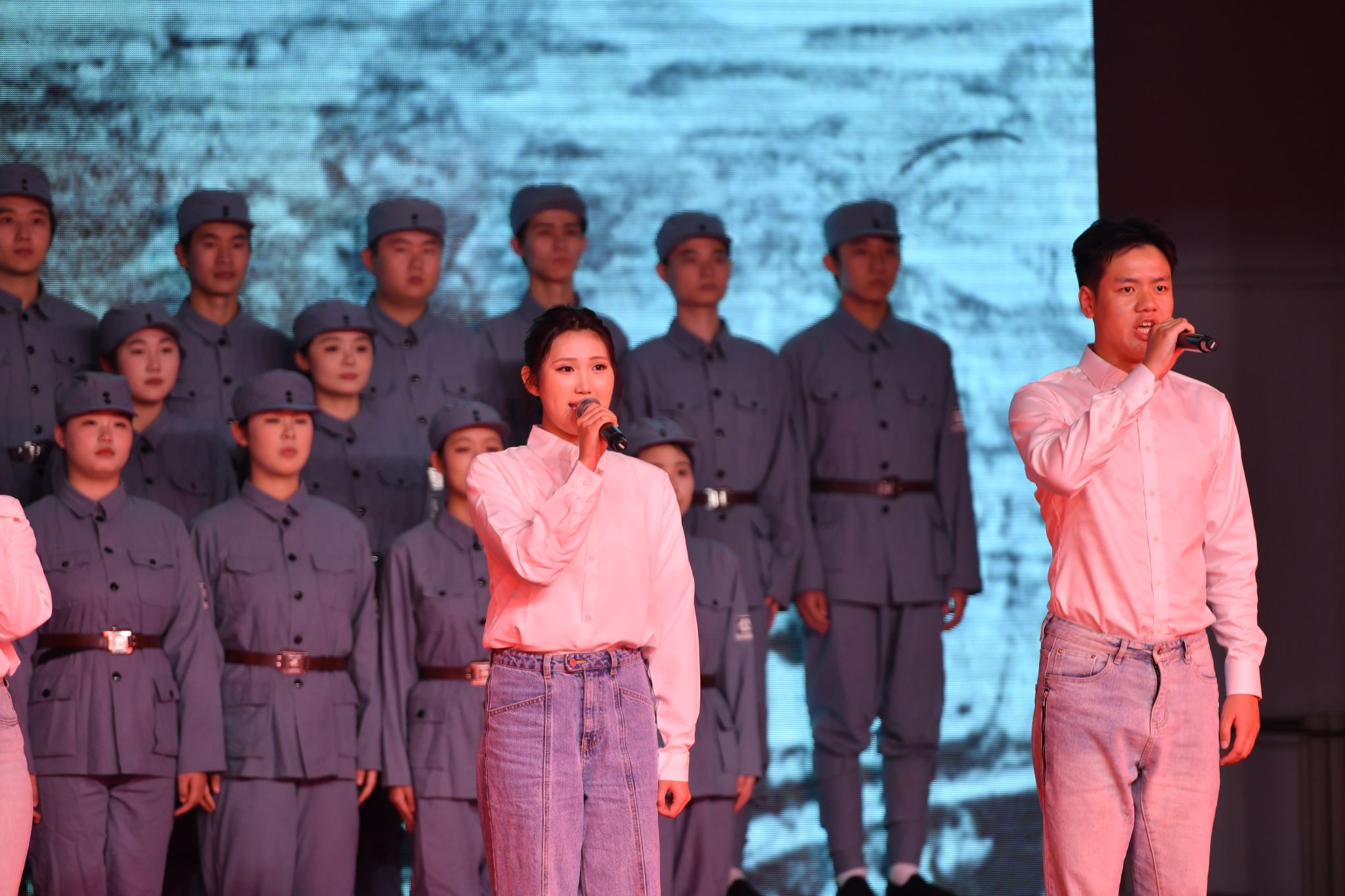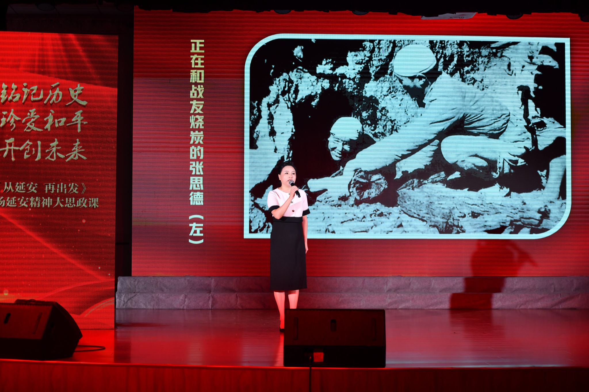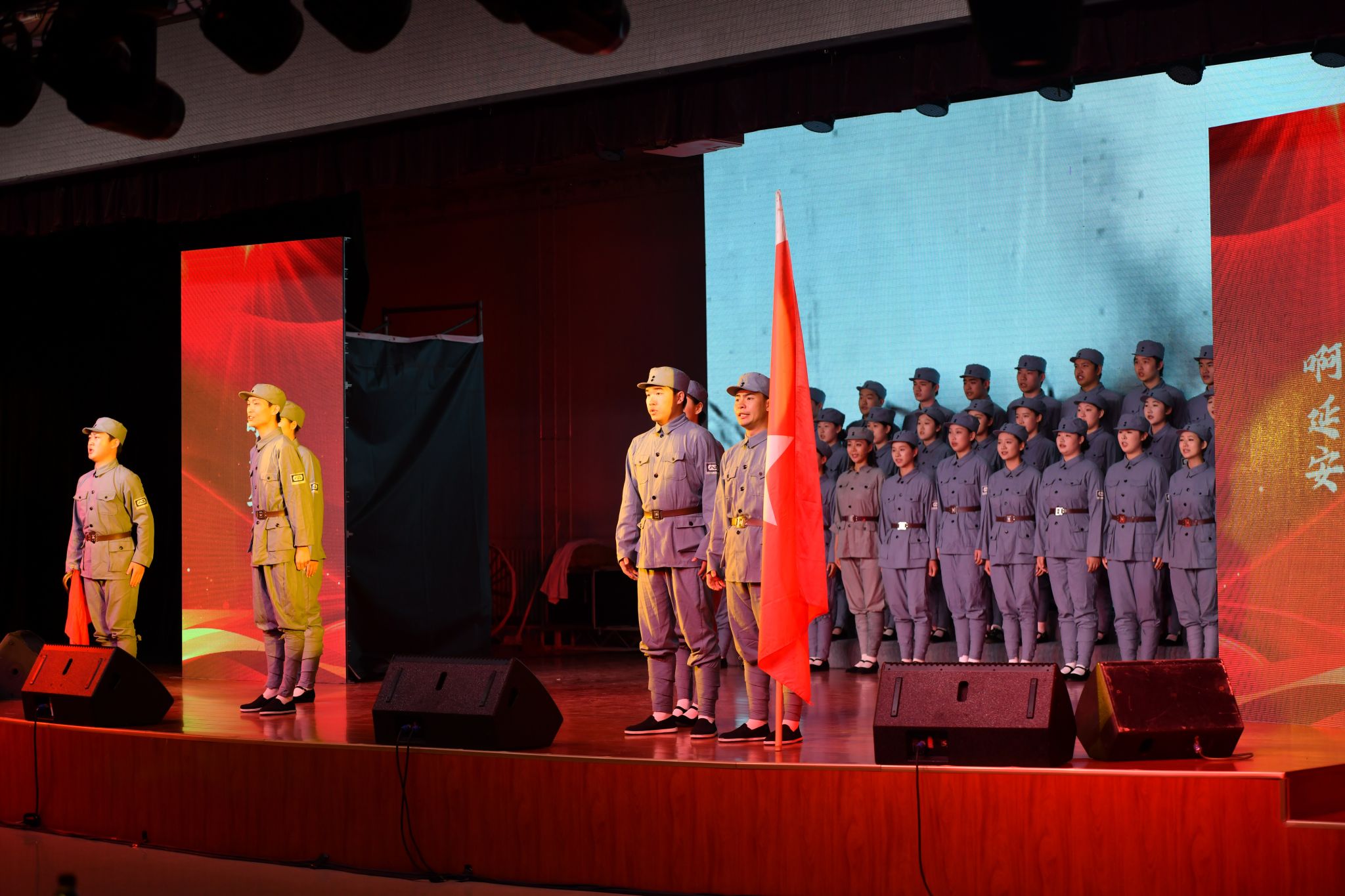 活動分為序幕、信念之路、思想之炬、為民之心、奮進之力四大篇章、尾聲,包括《延安頌》《延安窯洞有馬列主義》《全心全意為人民服務的楷模》《領航》等8個節目,并由4位知名專家分別圍繞“為什么中國的希望在延安”“為什么延安窯洞有馬列主義”“為什么要將為人民服務作為黨的根本宗旨寫入《中國共產黨章程》”“為什么習近平總書記囑托無論將來物質生活多么豐富,自力更生艱苦奮斗的精神一定不能丟”等核心問題,進行深入淺出的理論闡釋,實現了文藝表達與思想教育的深度融合,活動現場莊重熱烈,洋溢著濃厚的紅色氛圍。其中,我校音樂系教師李強、田立分別演繹了《領航》、《山丹丹開花紅艷艷》歌曲,我校合唱團以激昂的歌聲合唱了《延安頌》《領航》等曲目,傳遞出新時代青年繼承革命傳統、勇擔使命的堅定信念。