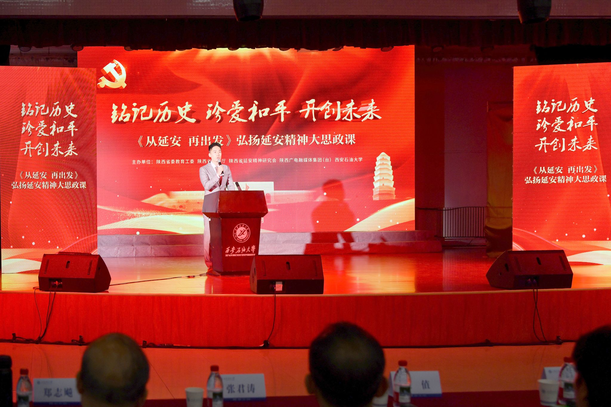 為深入貫徹落實習近平總書記關于弘揚延安精神的重要指示精神,推動延安精神進校園、進課堂、進頭腦,9月10日晚,由省委教育工委、省教育廳、省延安精神研究會、陜西廣電融媒體集團(臺)、西安石油大學聯合主辦的“從延安 再出發”弘揚延安精神開學第一堂“大思政課”首場在我校鄠邑校區騰輝活動中心舉行。陜西省延安精神研究會會長、陜西省人大常委會原副主任梁宏賢,陜西廣電融媒體集團(臺)黨委委員、副總編輯郭雄,西安市延安精神研究會會長李德文,鄠邑區委常委、區委宣傳部部長王值,我校校長王進富、校黨委副書記程永清、副校長張君濤以及師生代表出席宣講活動。“大思政課”還通過西安石油大學官微、抖音賬號等對外網絡直播,1.3萬余人次觀看了活動直播,點贊2.6萬余人次。