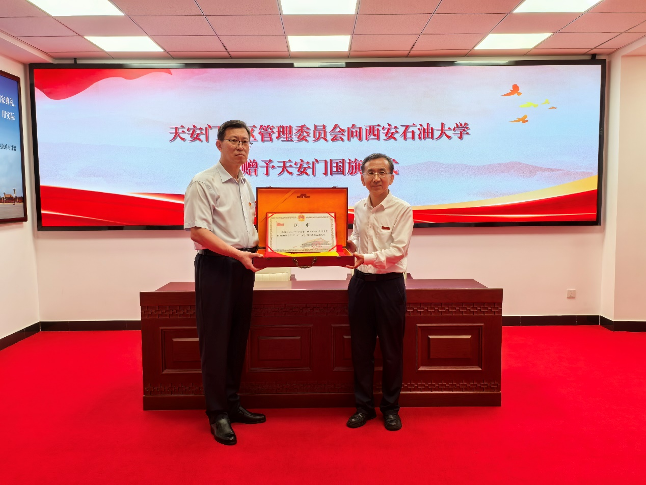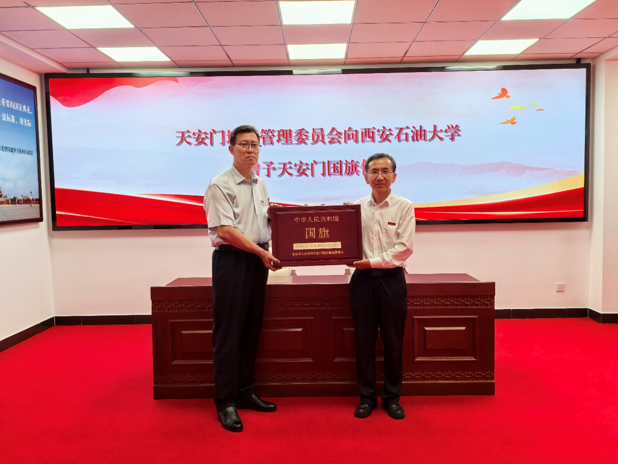 學校將嚴格按照《中華人民共和國國旗法》和相關工作要求,將受贈國旗永久珍藏、全幅展示于校史館,持續發揮好這面國旗的愛國主義教育功能,開展內容豐富、形式多樣的愛國主義教育活動,激勵全校師生厚植愛國主義情懷,勇擔能源報國使命,爭做行動派,跑出加速度,為服務國家能源戰略貢獻西石大的智慧和力量。